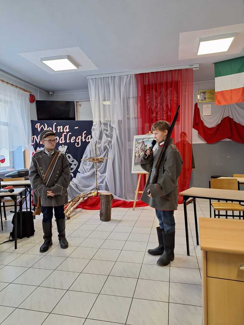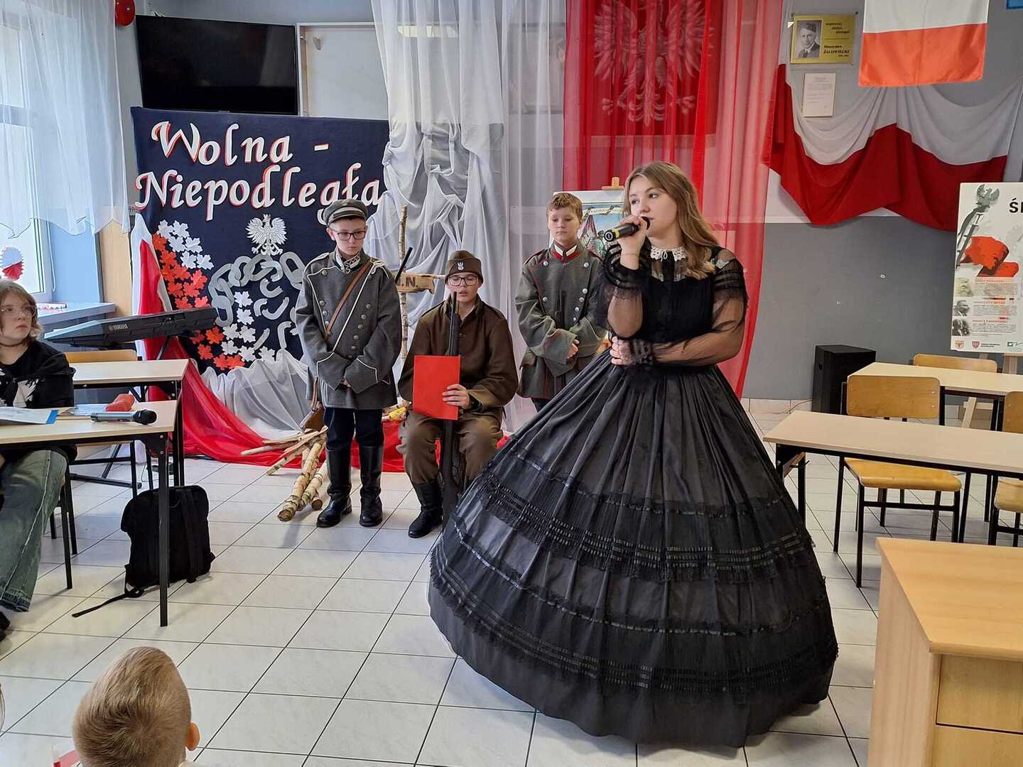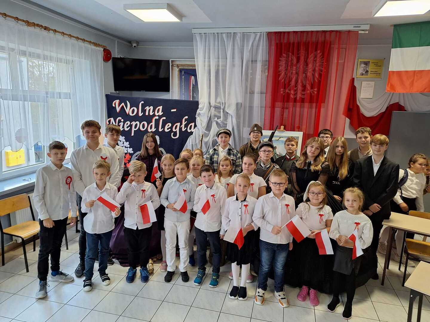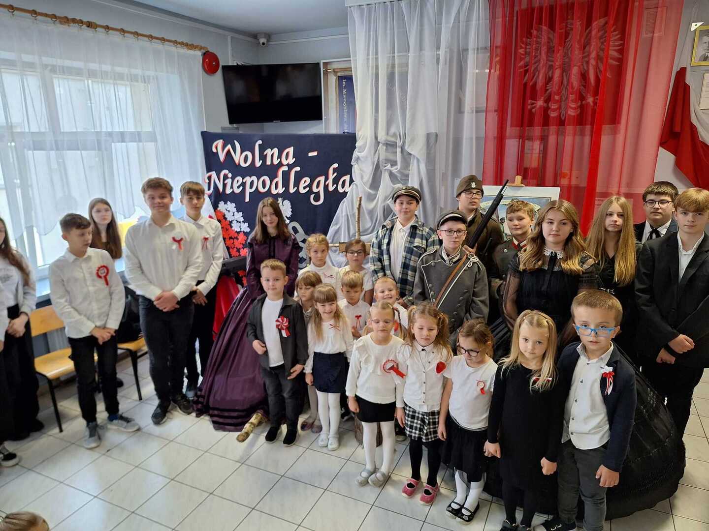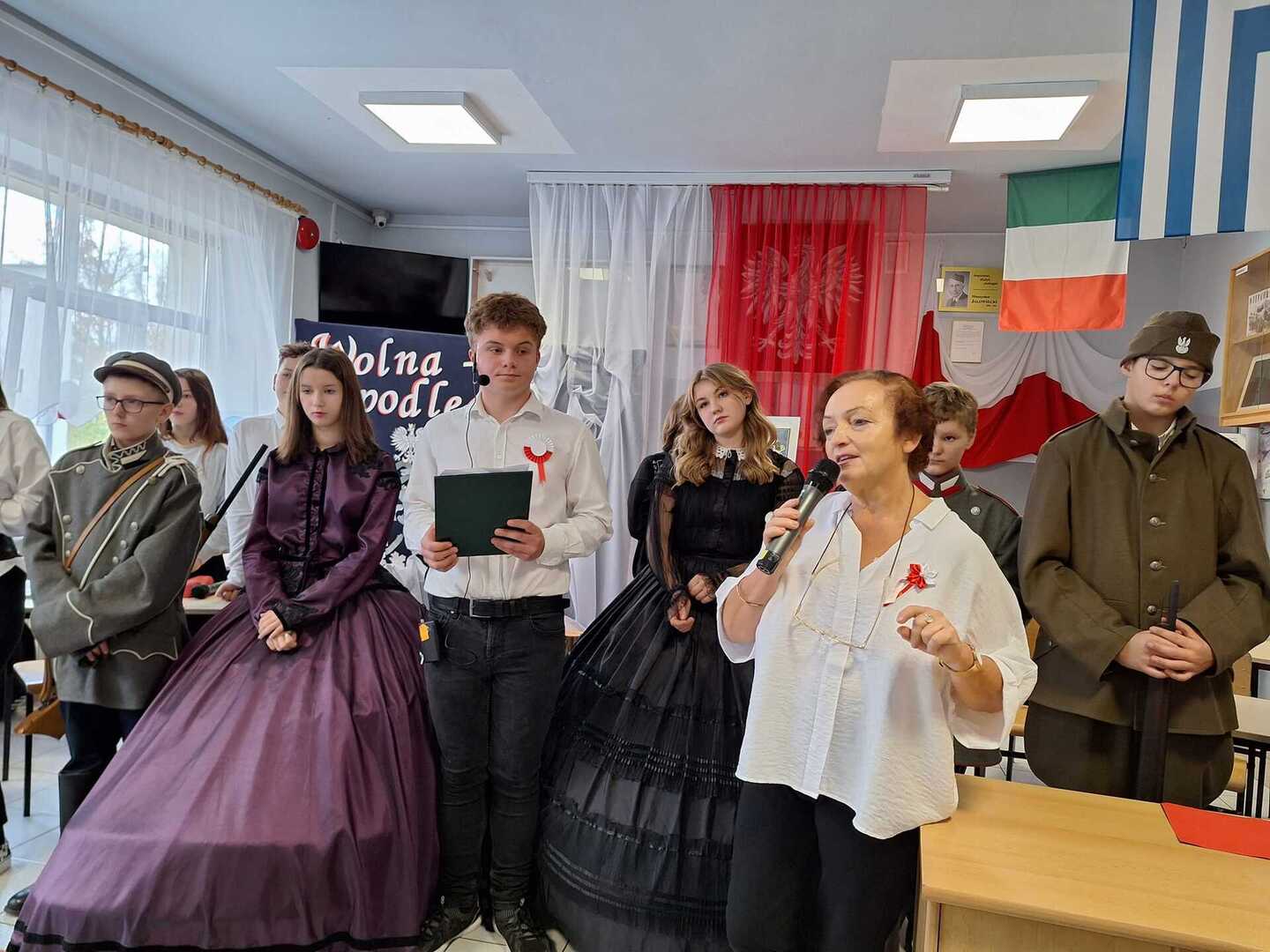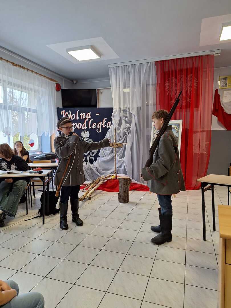 . Dzisiaj klasa siódma zabrała nas w godzinną podróż w przeszłość. Uczniowie pokazali walkę narodowowyzwyleńczą Polaków, trudne lata emigracji i zsyłek na Sybir, a także walkę podczas I wojny światowej. Na koniec uświadomili wszystkim jak cenne mogą być lekcje języka polskiego i historii. Cała społeczność szkolna odśpiewała hymn i Rotę. Apel został zorganizowany dzięki wsparciu Grupy Rekonstrukcyjnej Historycznej 25 Dywizji Piechoty przy LGD 7 ,, Kraina Nocy i Dni '' w Cekowie, skąd pozyskaliśmy stroje dla naszych aktorów.