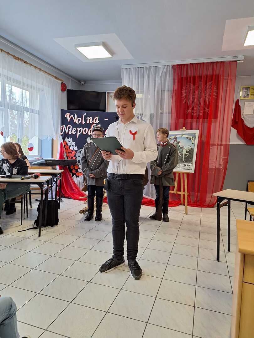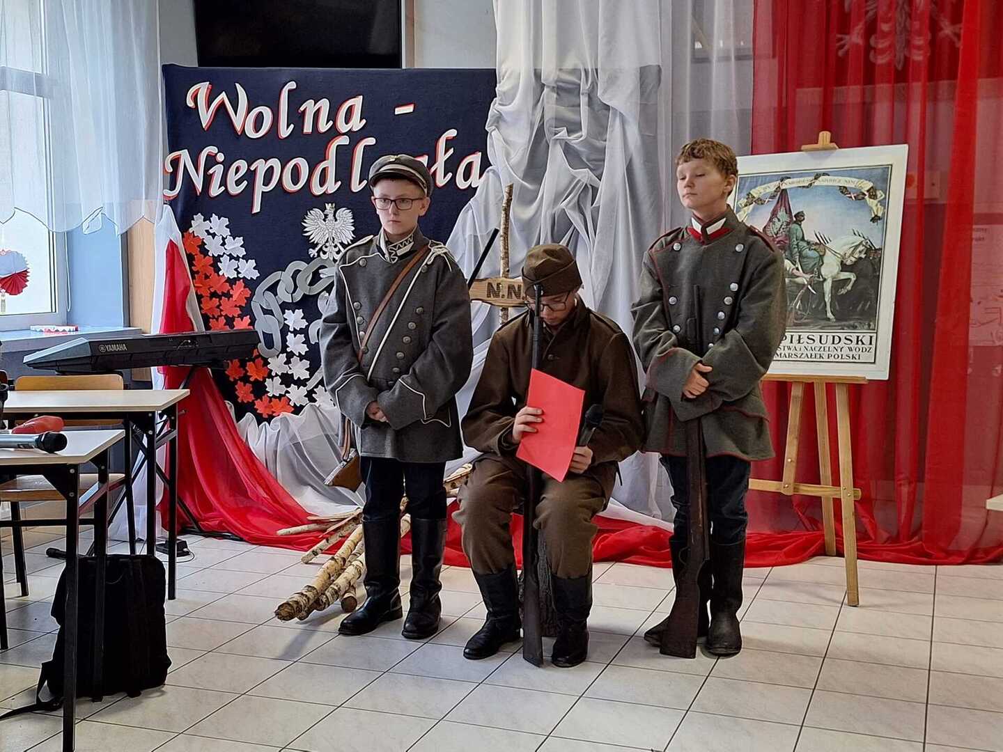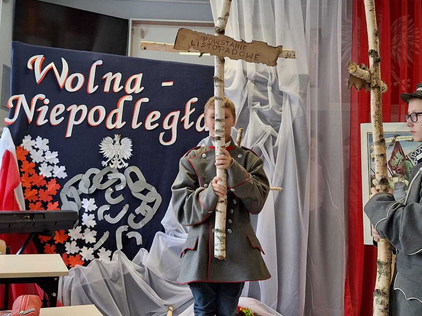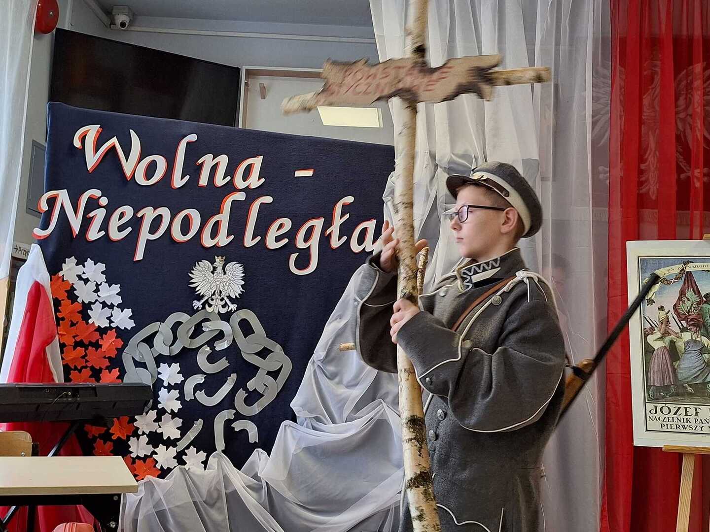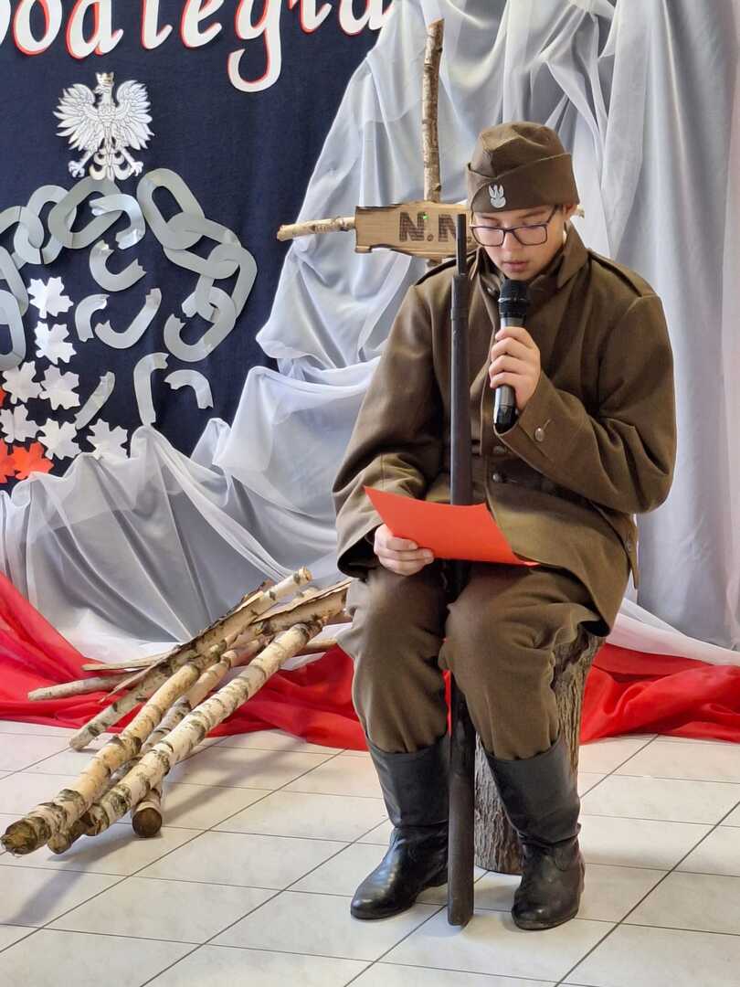 . Dzisiaj klasa siódma zabrała nas w godzinną podróż w przeszłość. Uczniowie pokazali walkę narodowowyzwyleńczą Polaków, trudne lata emigracji i zsyłek na Sybir, a także walkę podczas I wojny światowej. Na koniec uświadomili wszystkim jak cenne mogą być lekcje języka polskiego i historii. Cała społeczność szkolna odśpiewała hymn i Rotę. Apel został zorganizowany dzięki wsparciu Grupy Rekonstrukcyjnej Historycznej 25 Dywizji Piechoty przy LGD 7 ,, Kraina Nocy i Dni '' w Cekowie, skąd pozyskaliśmy stroje dla naszych aktorów.
