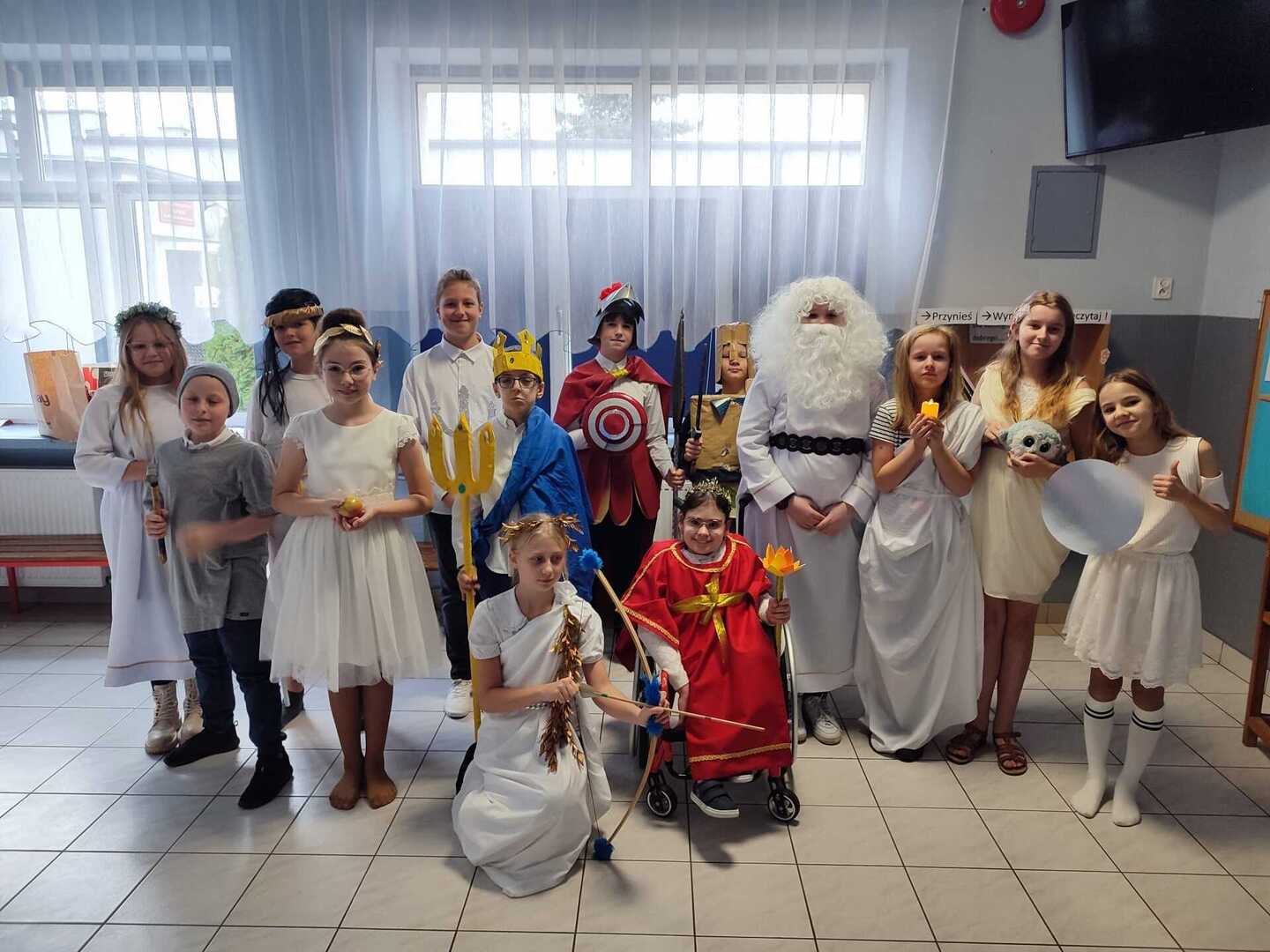 Uczniowie klasy piątej zamiast na lekcję historii, trafili na górę Olimp, gdzie odbyła się niecodzienna uczta bogów greckich. W krainie mitów greckich spotkać można było Herę, trzech Posejdonów, trzy Ateny, dwie Afrodyty, dwóch Aresów, Hefajstosa, Hestię i Artemidę. Tylko króla Olimpu – Zeusa zabrakło..