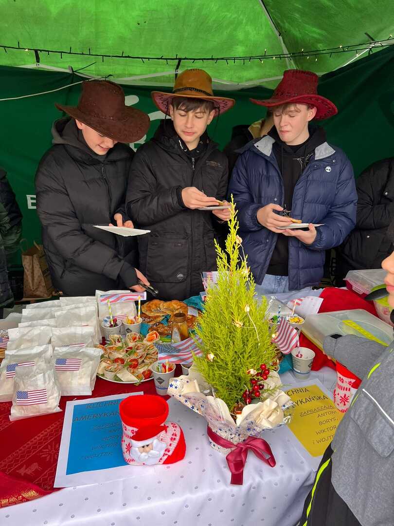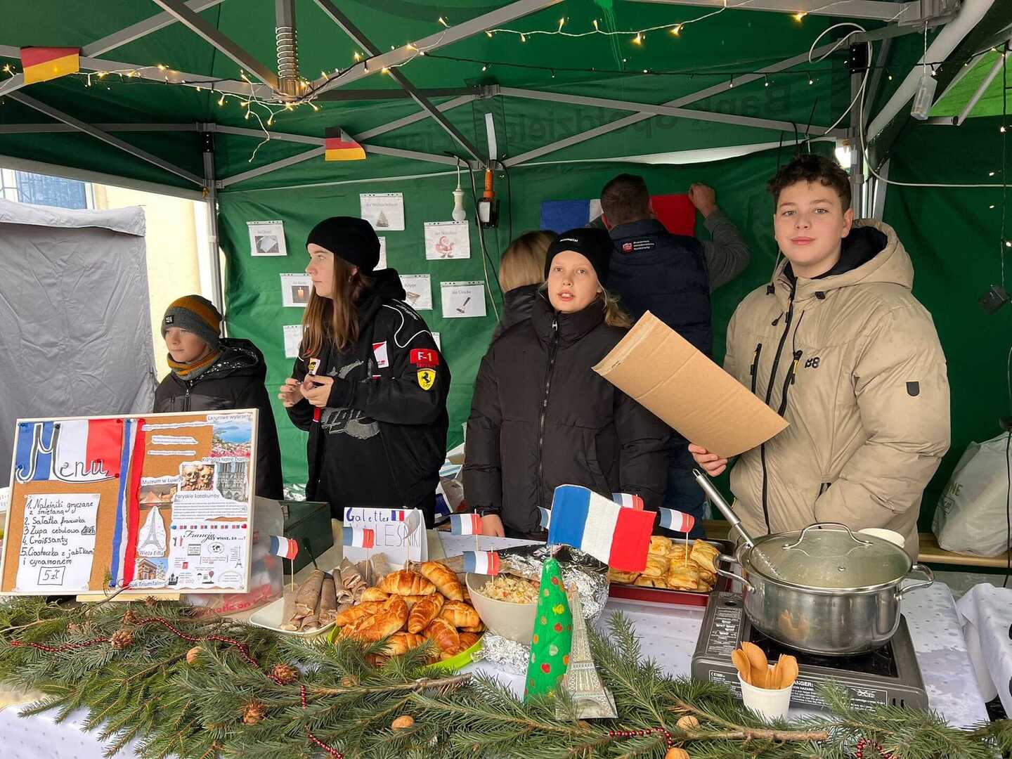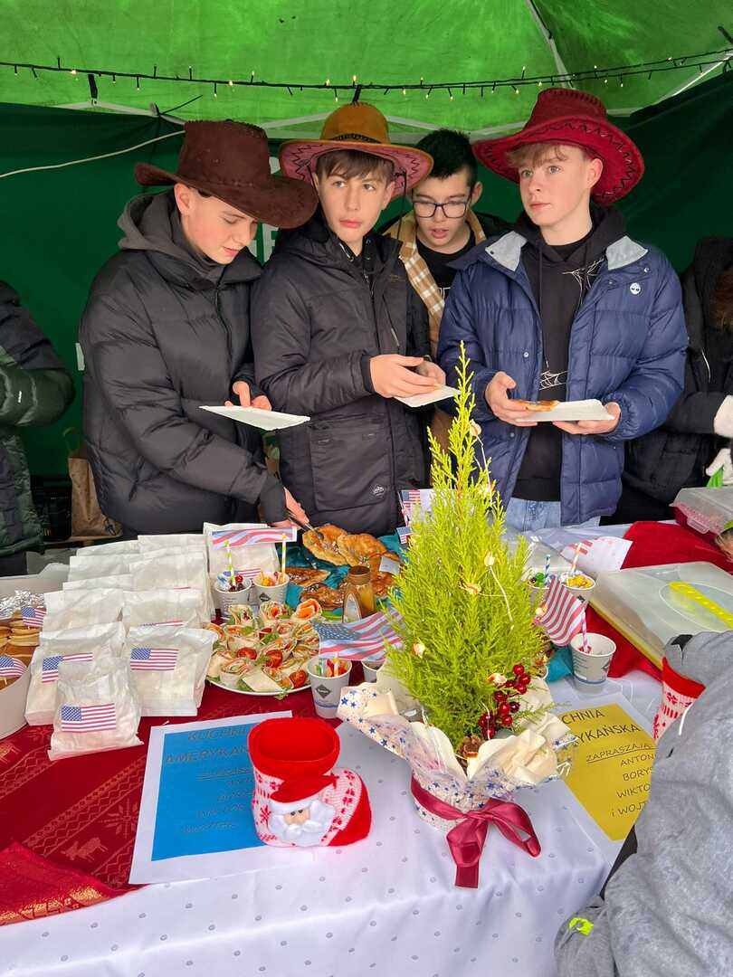 Zapachniało Świętami!!!! W niedzielę na Jarmarku Bożonarodzeniowym uczniowie i nauczyciele sprawili się na 5. Poza polskimi potrawami z KGW były też/ uczniowskie /włoskie, francuskie, niemieckie i amerykańskie specjały świąteczne. A dochód na wyjazd szkoleniowy na Euroweek, by jeszcze lepiej mówić po angielsku. Wszystkim zaangażowanym/Rodzicom też/ ukłony. I jeszcze większe artystom, którzy pięknie śpiewali kolędy. Brawo