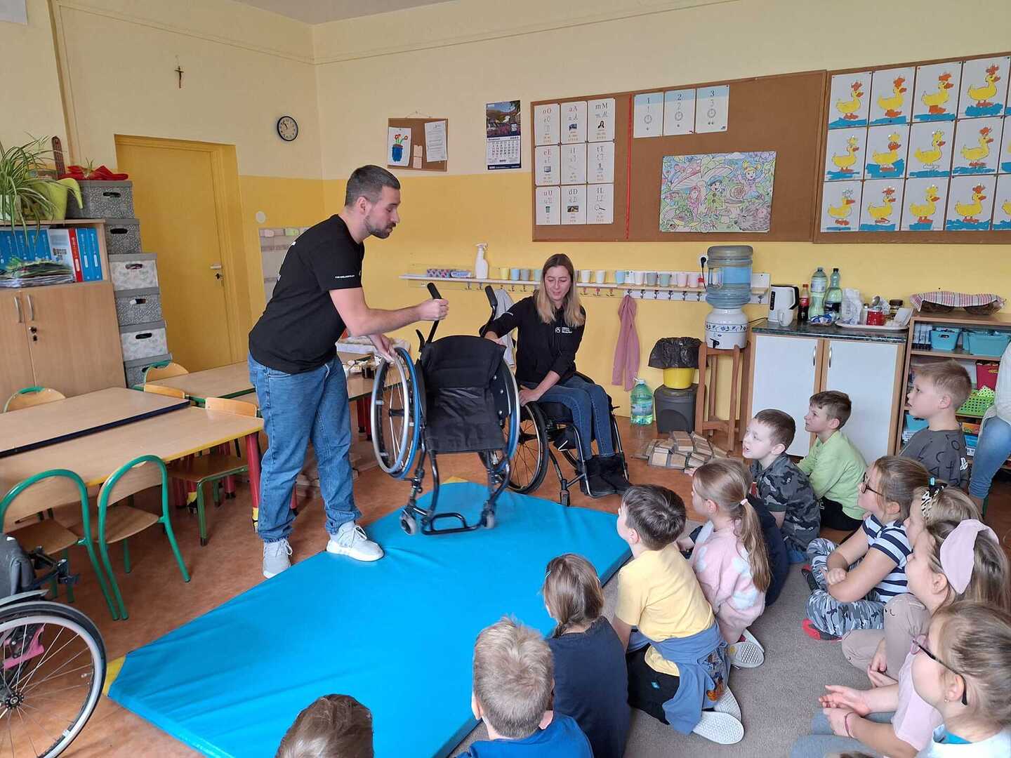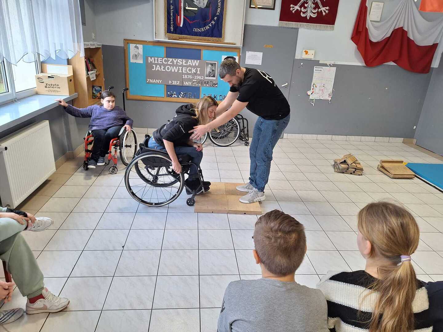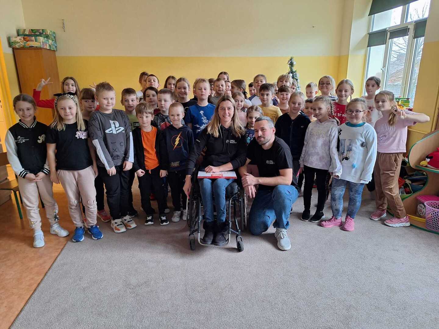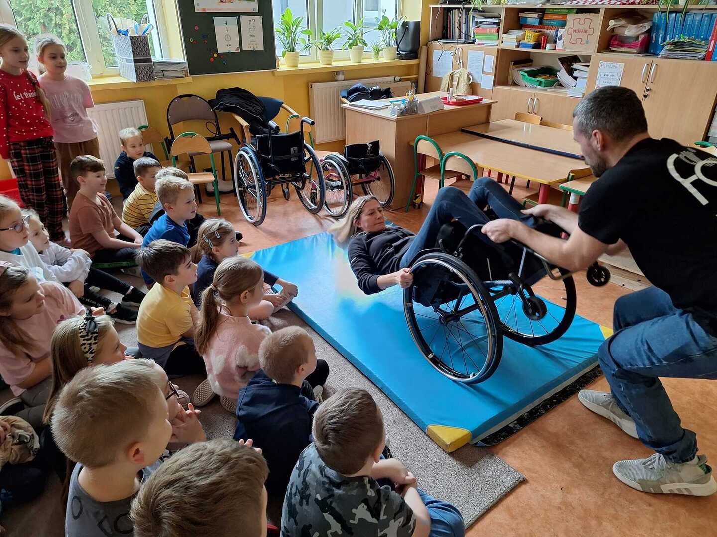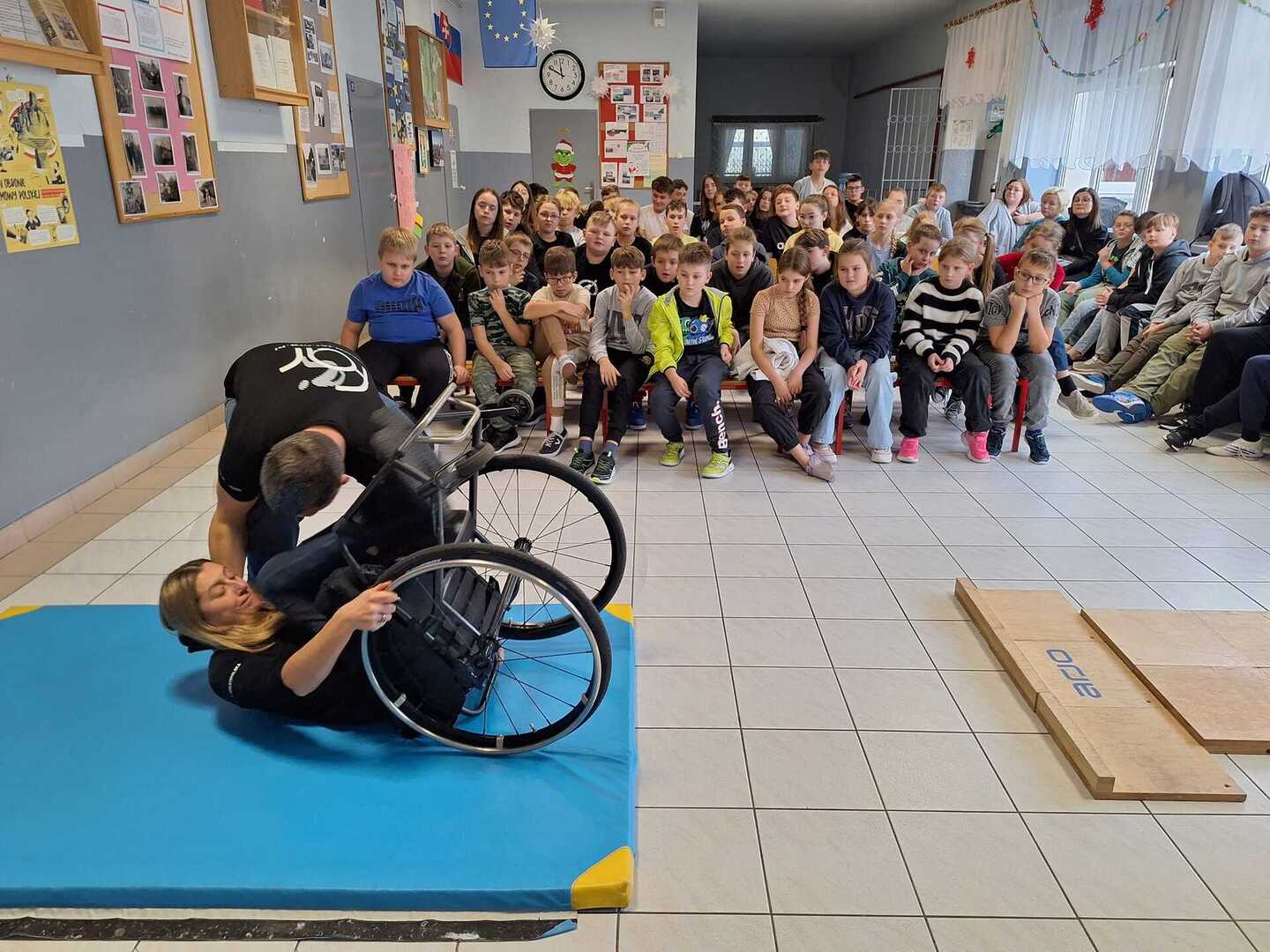 Naszą szkołę odwiedzili niecodzienni goście . Na zaproszenie Pani Agaty Hubert , która jest nauczycielem współorganizującym Laury z klasy 5 , która porusza się na wózku inwalidzkim , przyjechali do nas członkowie Fundacji Aktywnej Rehabilitacji „FAR ”z Poznania , z którą to współpracuje Laura. Pani Karolina i Pan Emil w bardzo przystępny i ciekawy sposób przybliżyli naszym uczniom klas 1-3 i 4-7 codzienne problemy ludzi poruszających się na wózkach .Była to niezwykła lekcja empatii . Poznaliśmy wiele cennych i praktycznych wskazówek jak możemy pomóc osobie niepełnosprawnej , co dla naszej społeczności ma teraz szczególne znaczenie odkąd jest z nami Laura. Dziękujemy bardzo ,że mogliśmy wziąć udział w takim wydarzeniu.Warto wiedzieć więcej ,aby sprawniej nieść pomoc