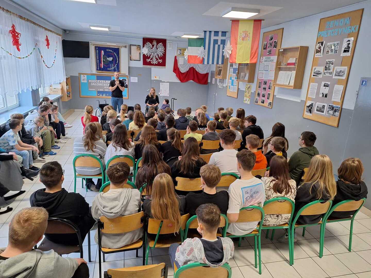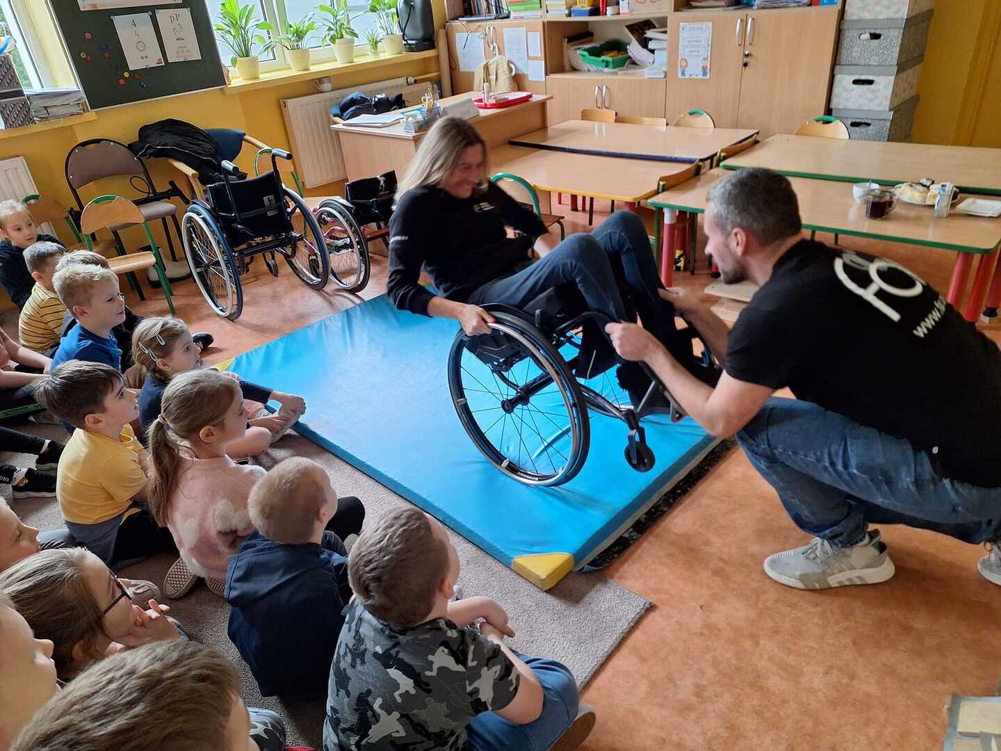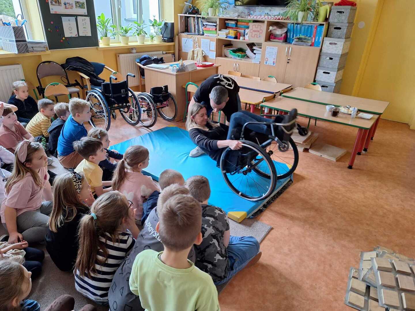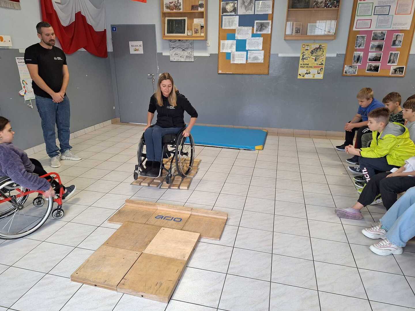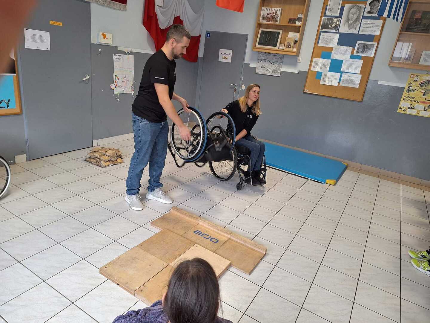 Naszą szkołę odwiedzili niecodzienni goście . Na zaproszenie Pani Agaty Hubert , która jest nauczycielem współorganizującym Laury z klasy 5 , która porusza się na wózku inwalidzkim , przyjechali do nas członkowie Fundacji Aktywnej Rehabilitacji „FAR ”z Poznania , z którą to współpracuje Laura. Pani Karolina i Pan Emil w bardzo przystępny i ciekawy sposób przybliżyli naszym uczniom klas 1-3 i 4-7 codzienne problemy ludzi poruszających się na wózkach .Była to niezwykła lekcja empatii . Poznaliśmy wiele cennych i praktycznych wskazówek jak możemy pomóc osobie niepełnosprawnej , co dla naszej społeczności ma teraz szczególne znaczenie odkąd jest z nami Laura. Dziękujemy bardzo ,że mogliśmy wziąć udział w takim wydarzeniu.Warto wiedzieć więcej ,aby sprawniej nieść pomoc