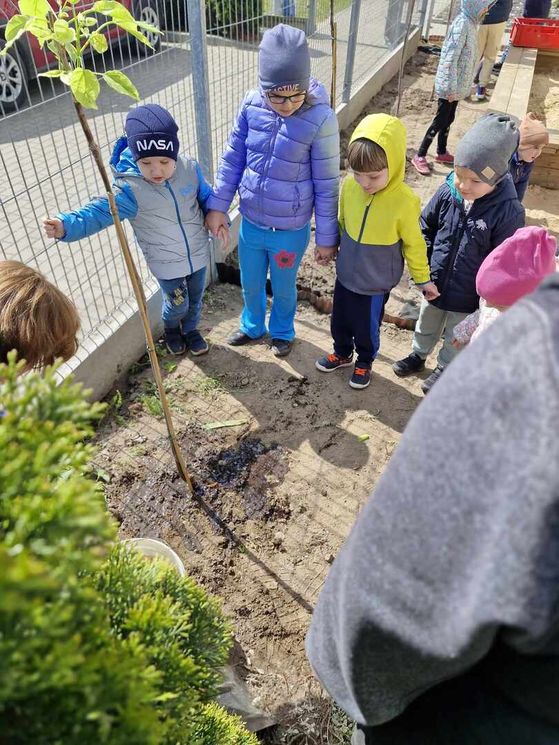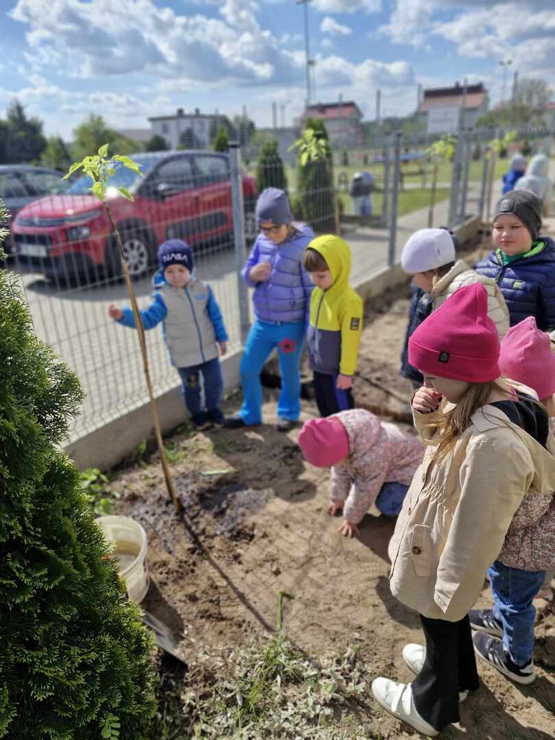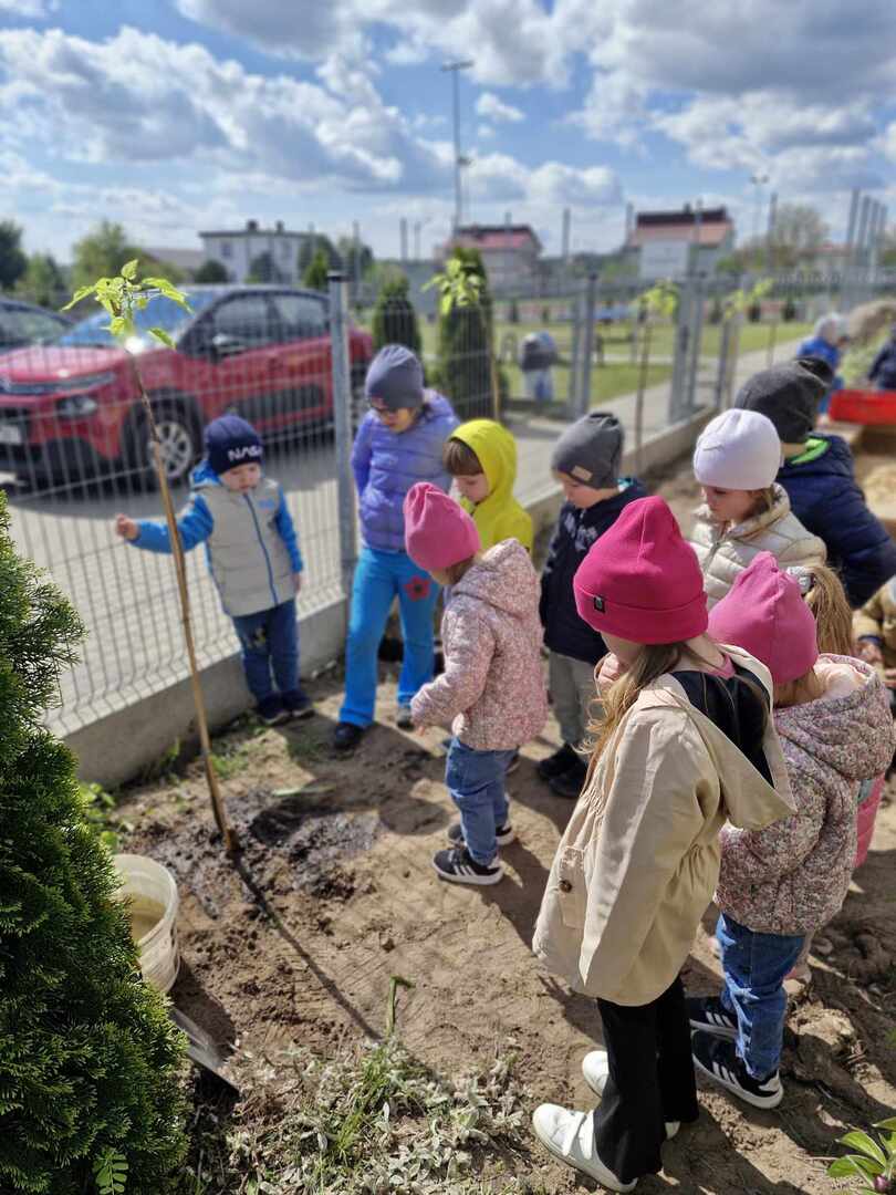 brały udział w sadzeniu drzewek 🌳 na terenie szkoły.