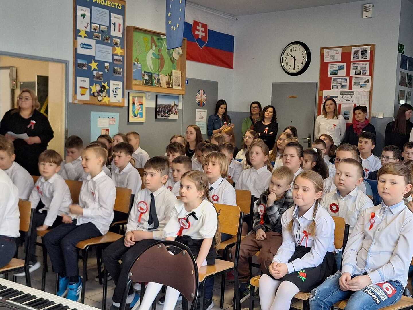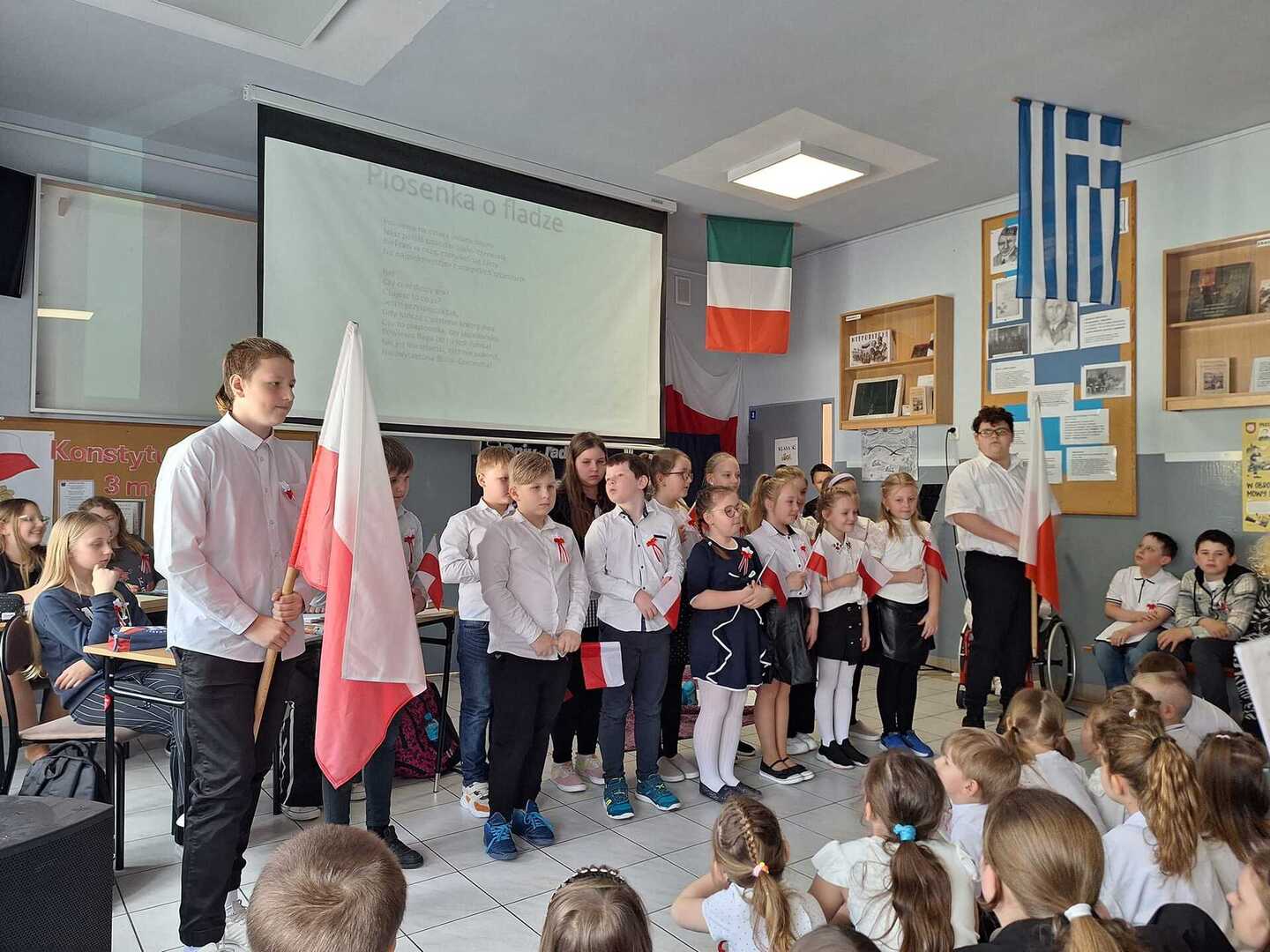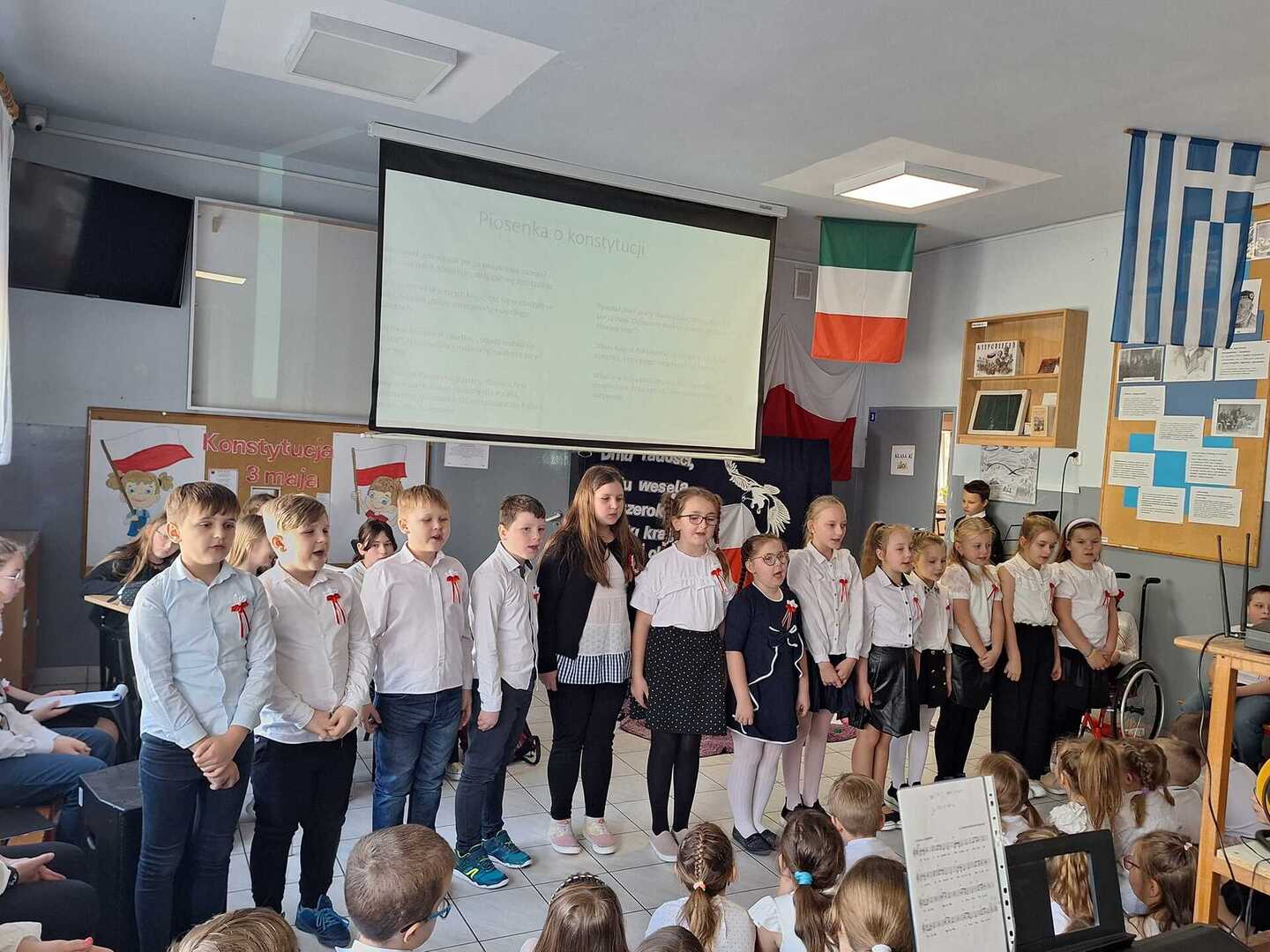 Nasza szkoła po raz kolejny świętowała obchody z okazji uchwalenia Konstytucji 3 maja. Uroczystość uświetnili uczniowie z klasy V, którzy podarowali słuchającym garść faktów historycznych. Klasa II zaopatrzyła apel w piosenki tematyczne.