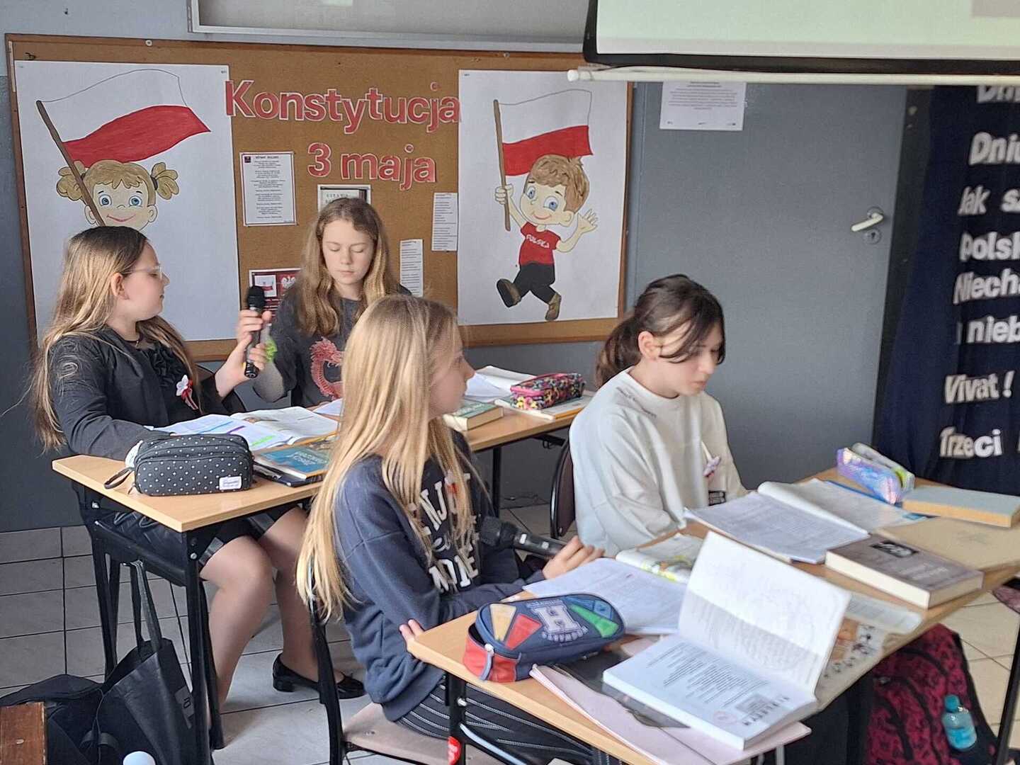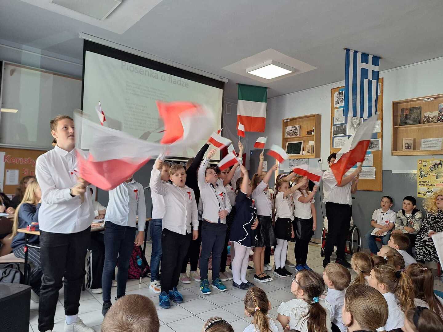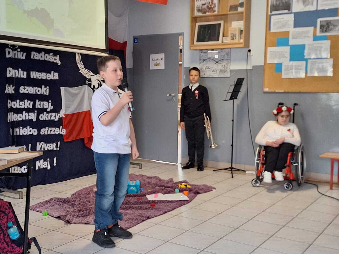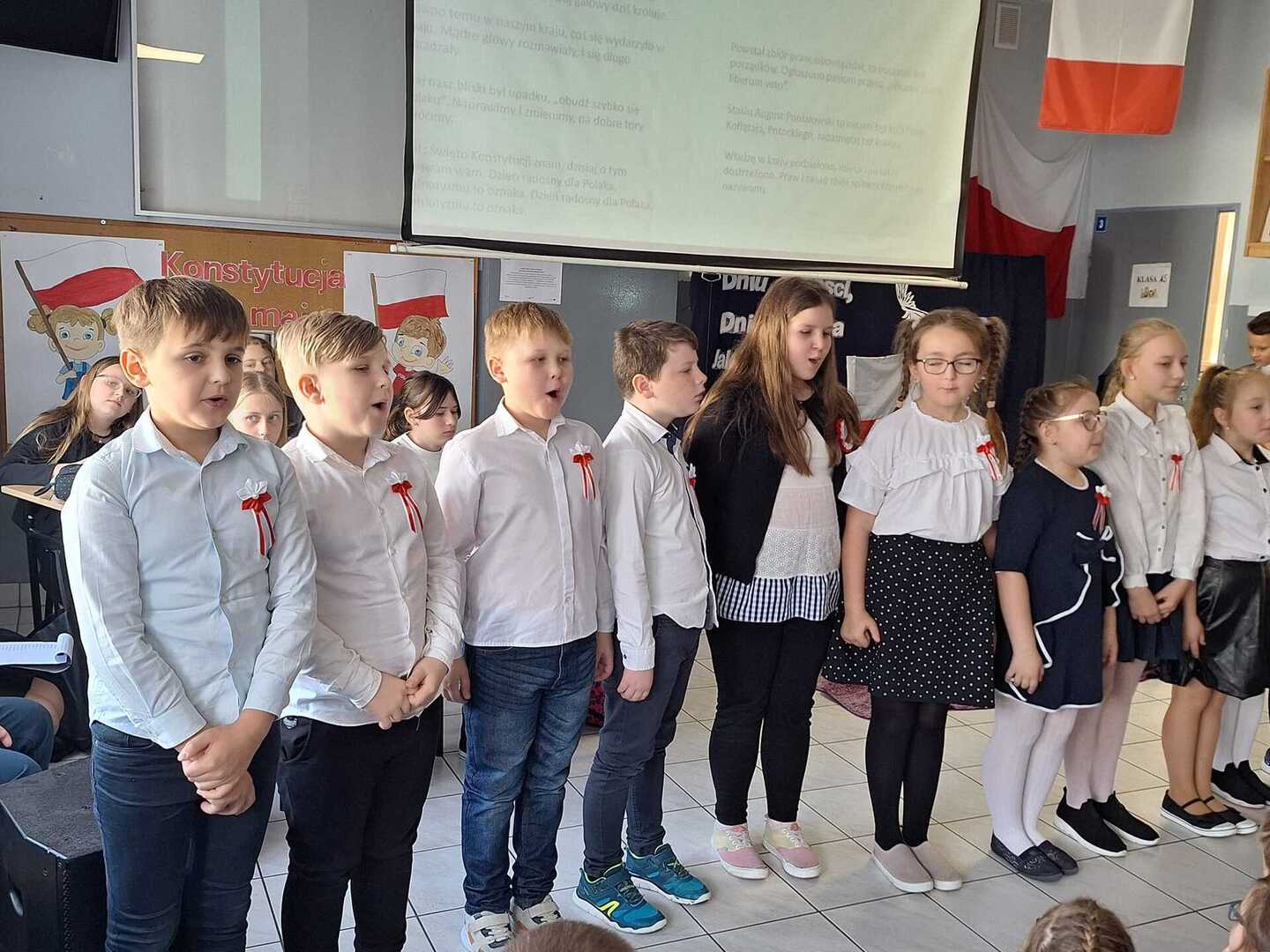 Nasza szkoła po raz kolejny świętowała obchody z okazji uchwalenia Konstytucji 3 maja. Uroczystość uświetnili uczniowie z klasy V, którzy podarowali słuchającym garść faktów historycznych. Klasa II zaopatrzyła apel w piosenki tematyczne.