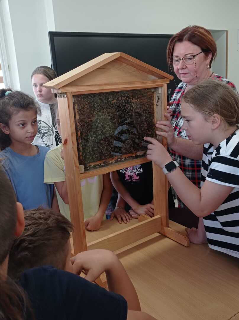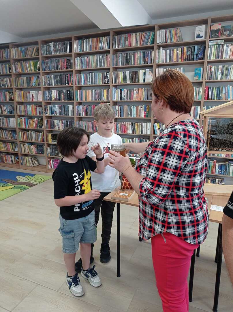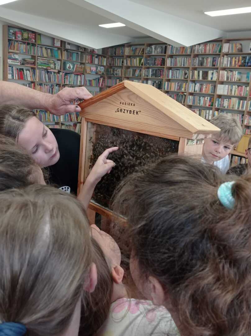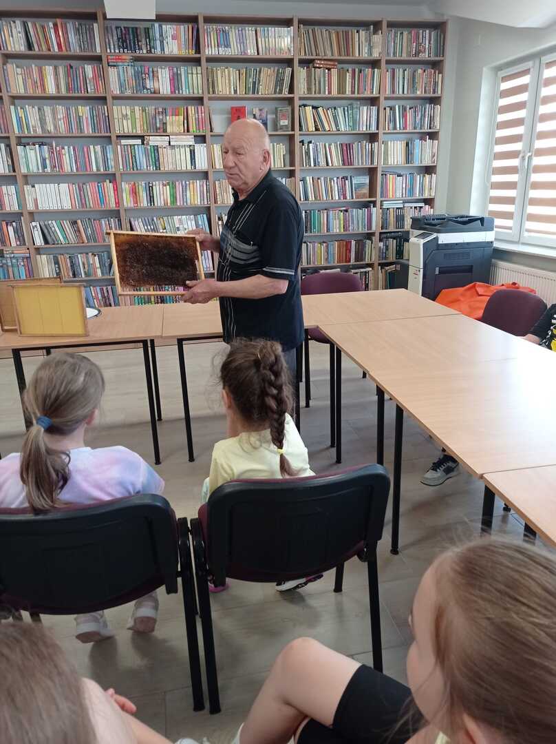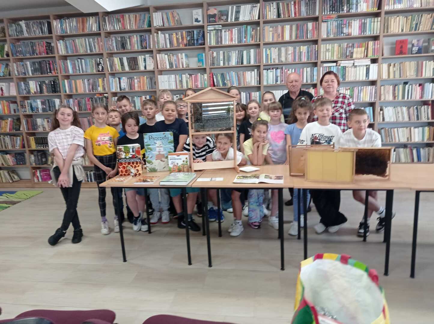 Światowy Dzień Pszczoły przypada 20 maja. Z tej okazji uczniowie kl. 3 przybyli do biblioteki gminnej na spotkanie z pszczelarzem. Pan Marian wspólnie z panią bibliotekarką w interesujący sposób przekazali wiedzę na temat tych pożytecznych owadów. Ich znaczenie w naszym ekosystemie jest ogromne. Ciekawość uczniów budziły rekwizyty pszczelarskie oraz ramka z pszczołami - co widać na załączonych zdjęciach. Relaksacyjne brzęczenie, dym z podkurzacza i słodki miodek wzbogaciły przeżycia uczniów podczas tak bliskiego i bezpiecznego spotkania z pszczołami.