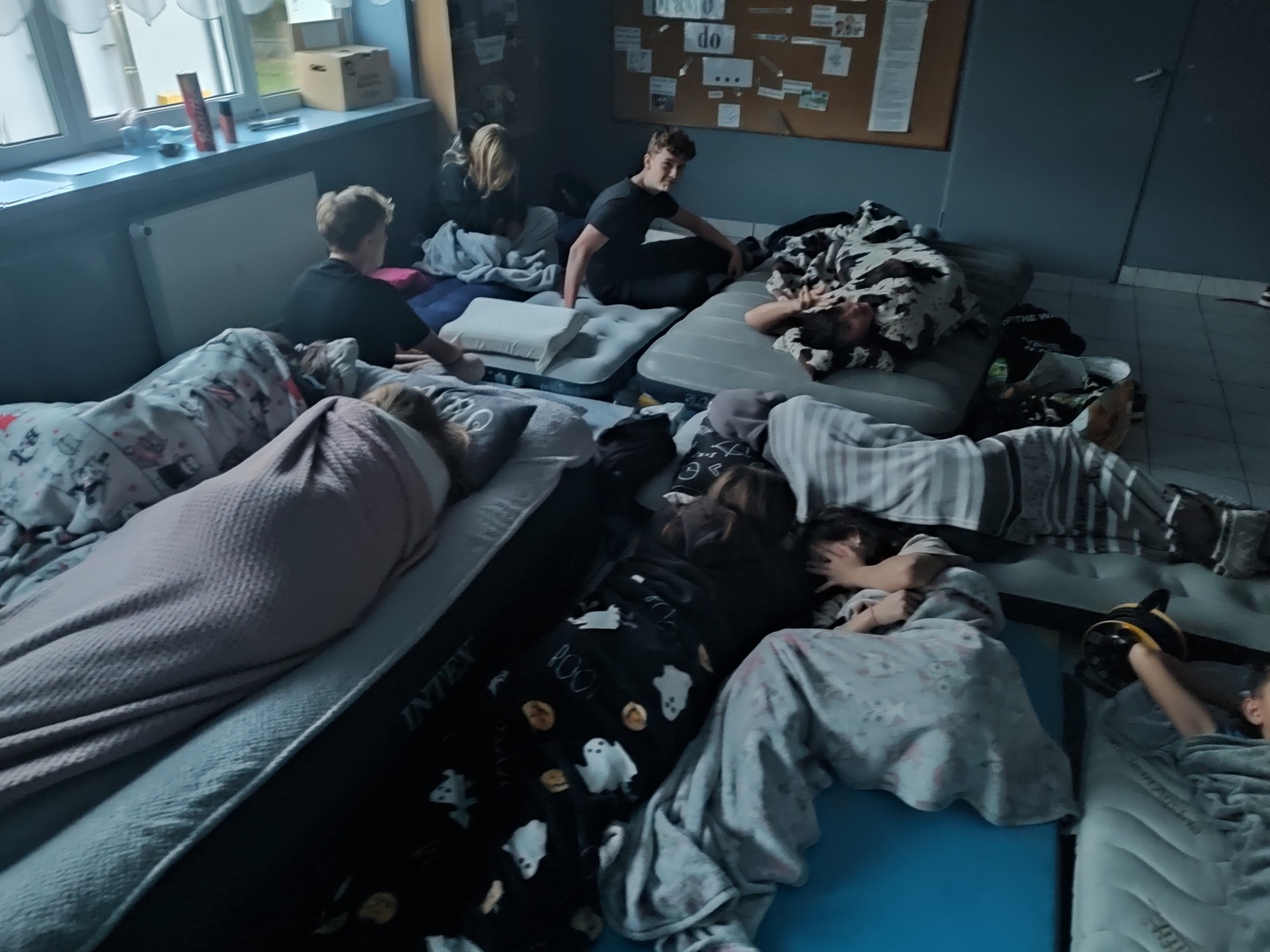 27 września uczniowie klasy ósmej spędzili noc w szkole. Zrobili to z własnej nieprzymuszonej woli. Dziewczynki przygotowały dla chłopców szereg zabaw, gdyż w ten sposób postanowiły zorganizować klasowy Dzień Chłopca. Panowie zostali podzieleni na zespoły, a rywalizowali m.in., w podchodach, teście wiedzy na poziomie klasy trzeciej, czy robieniu ciasta na babeczki. Na koniec rozegrali mecz piłki nożnej. Było przy tym dużo zabawy, radości i śmiechu…