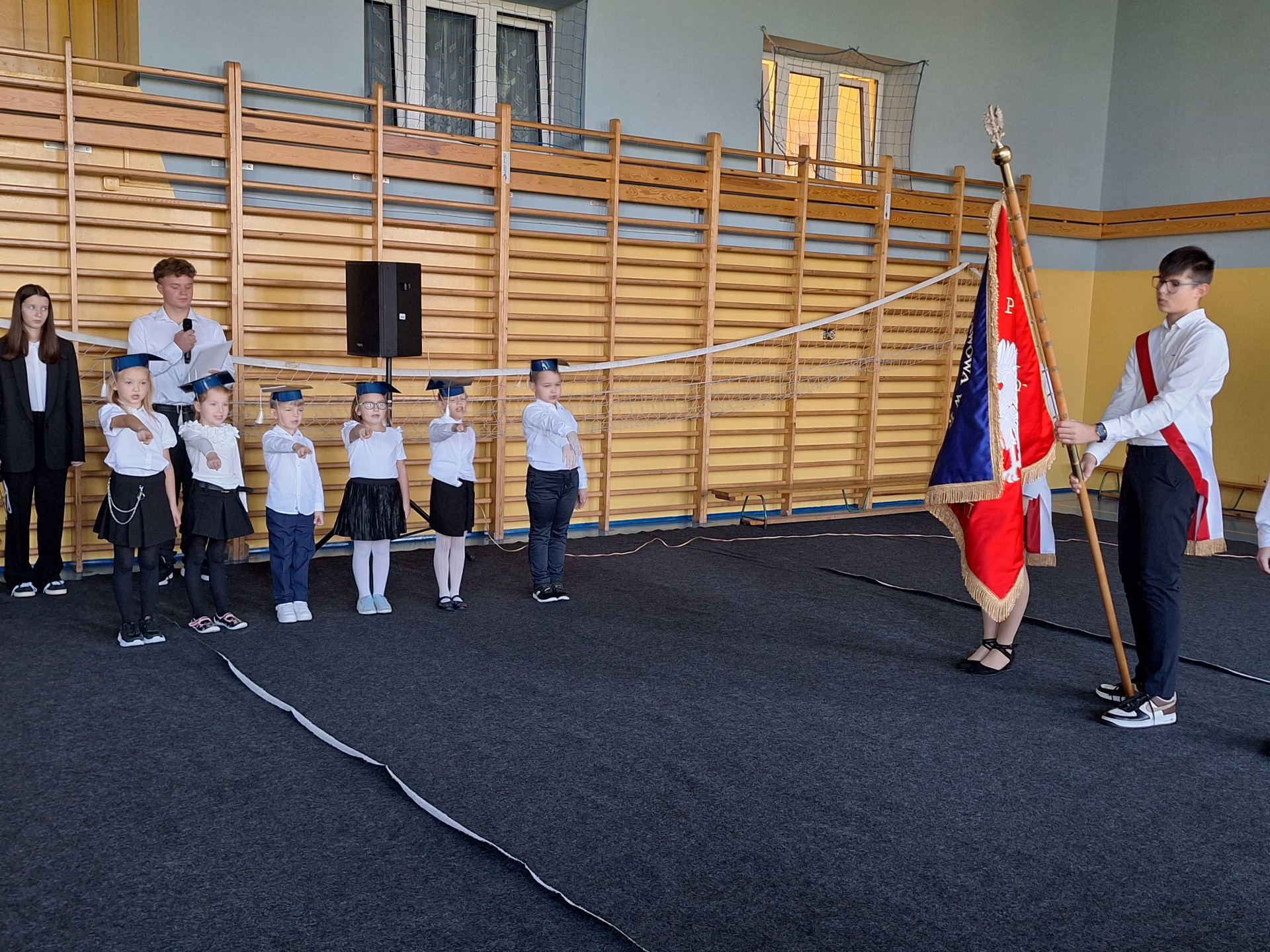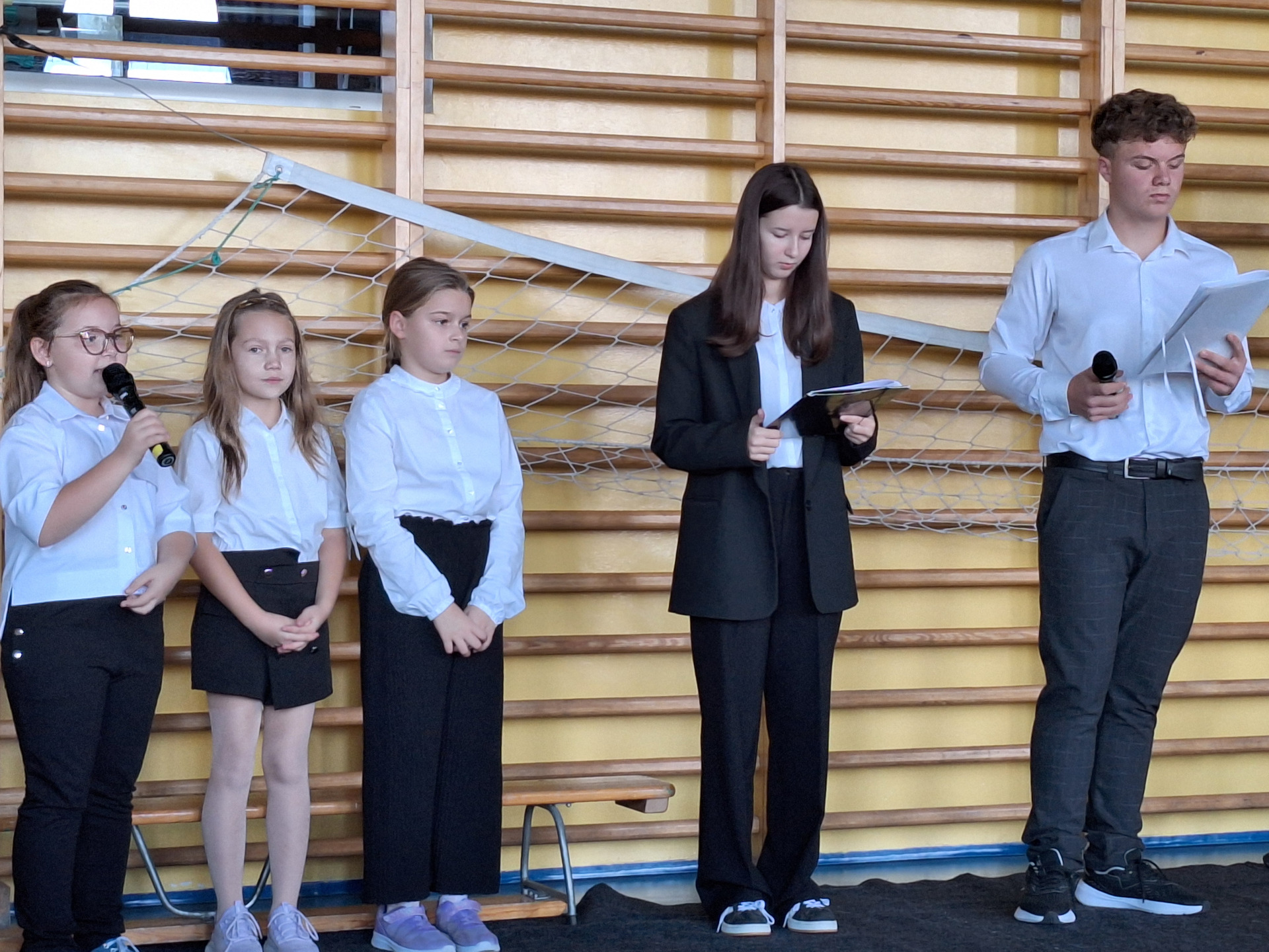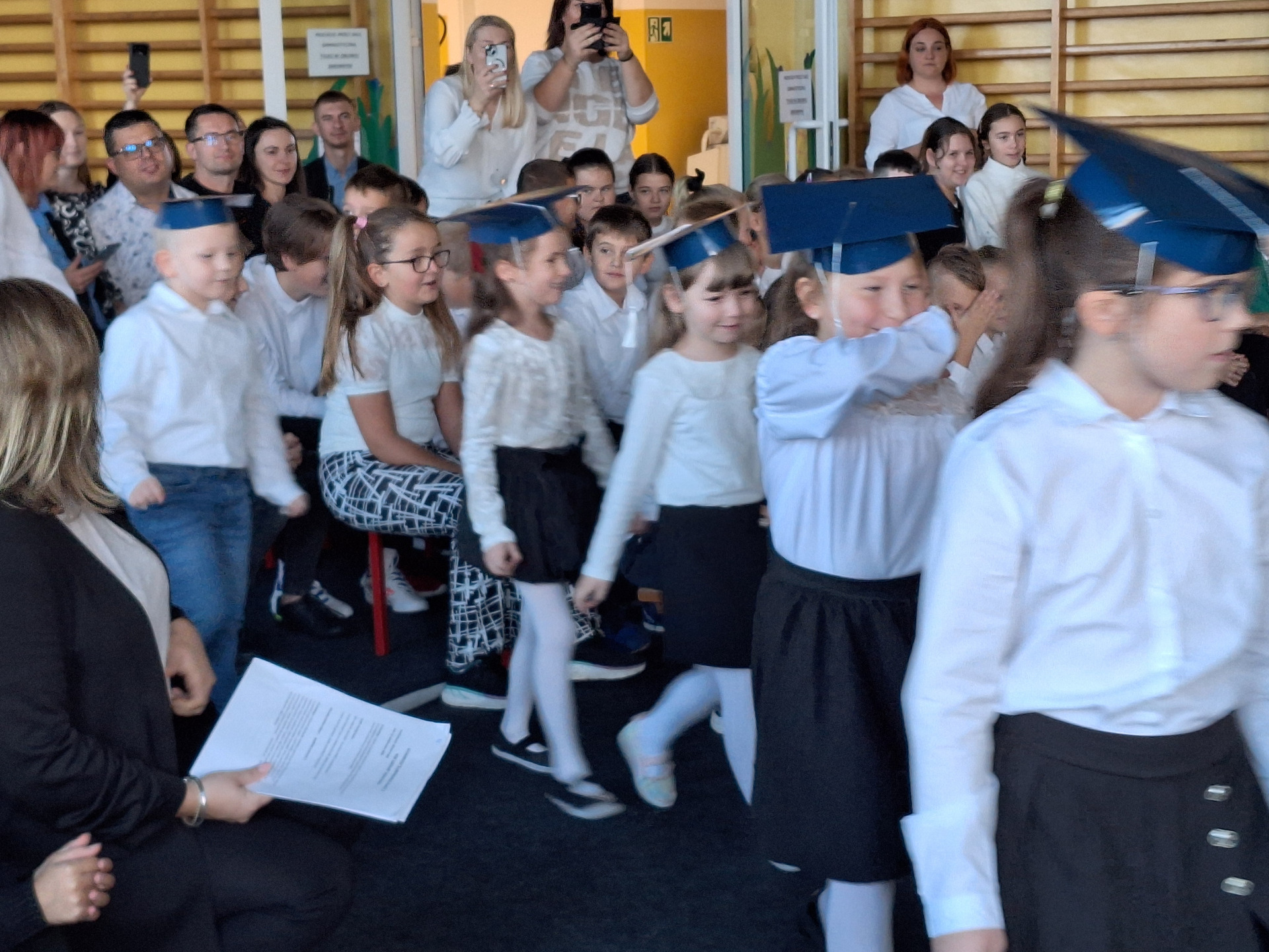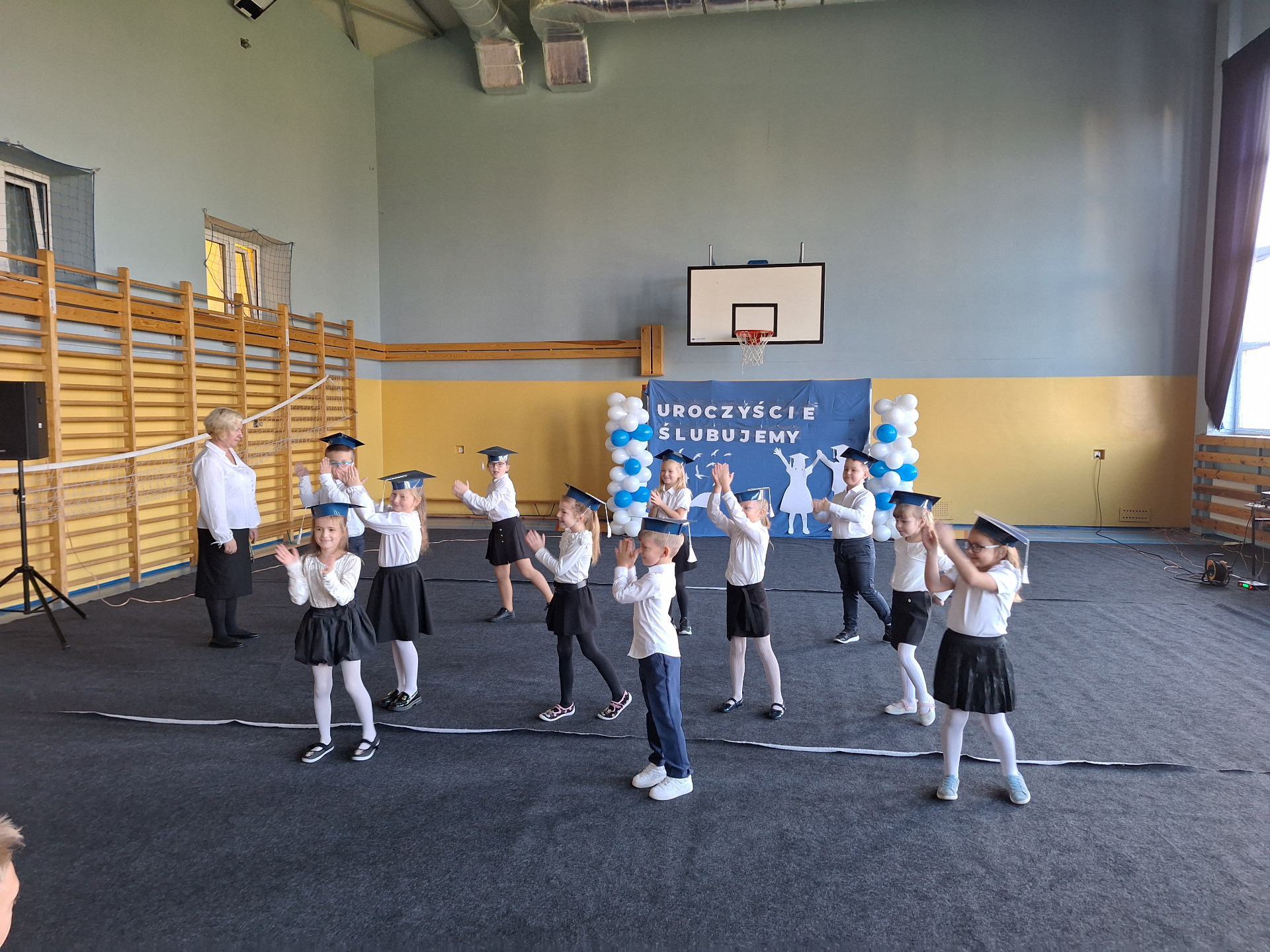 15 października 2024 roku w naszej szkole odbyła się uroczystość pasowania na ucznia. Odświętnie ubrani pierwszoklasiści w obecności zaproszonych gości z przejęciem zaprezentowali przygotowane wierszyki, taniec i zaśpiewali piosenki. Po złożeniu ślubowania Pani Dyrektor Anna Kwiatkowska dokonała symbolicznego pasowania na ucznia. Pierwszoklasiści otrzymali pamiątkowe dyplomy oraz drobne upominki przygotowane przez rodziców i samorząd uczniowski. Wszystkim Pierwszakom życzymy sukcesów w murach naszej szkoły i tego, aby ten dzień pozostał w ich pamięciach jako niezapomniana chwila. Rodzicom gratulujemy wspaniałych pociech.