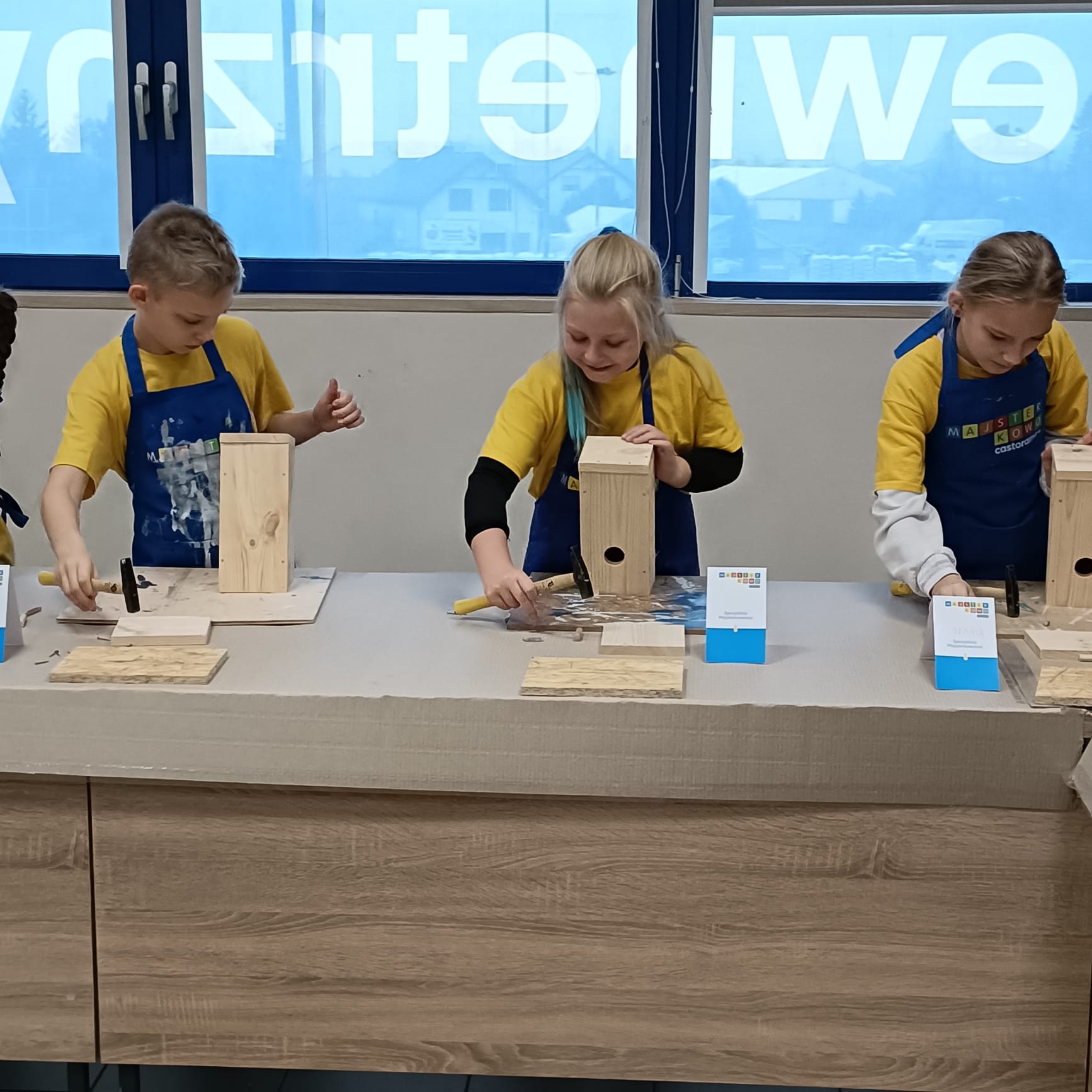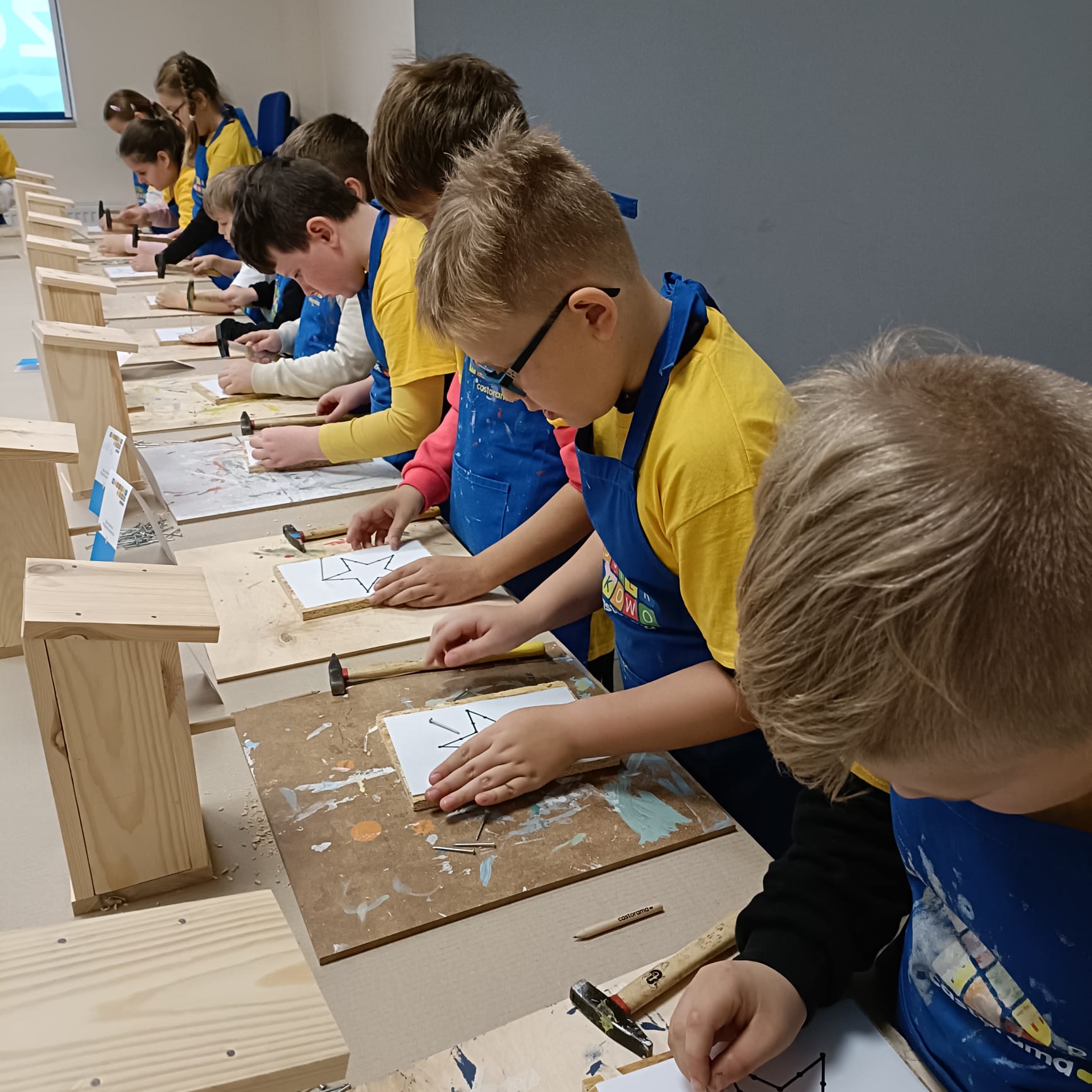 7 listopada klasy I i III uczestniczyły w zajęciach praktycznych Majsterkowo organizowanych przez CASTORAMĘ. Dzieci miały okazję samodzielnie zrobić między innymi budki lęgowe dla ptaków. Prawidłowe użycie młotka było niemałym wyzwaniem dla " młodych stolarzy" ale efekt był zadowalający. Bardzo dziękujemy zespołowi Castoramy za profesjonalnie przygotowane zajęcia.