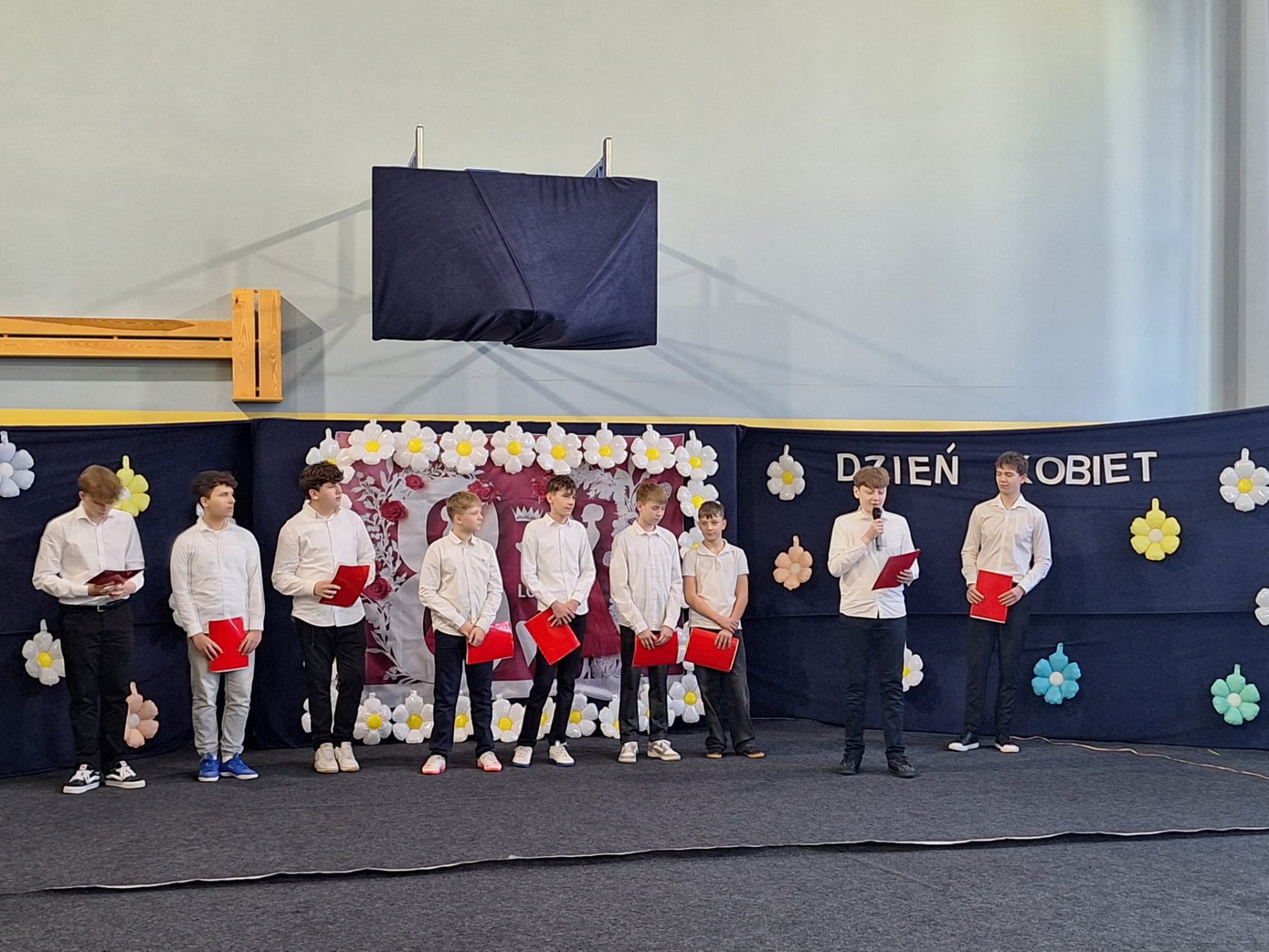 Całość została przygotowana z wielkim zaangażowaniem, a publiczność nagrodziła młodych artystów gromkimi brawami. Na sam koniec nauczycielkom i uczennicom zostały wręczone symboliczne upominki przygotowane przez Samorząd Uczniowski.