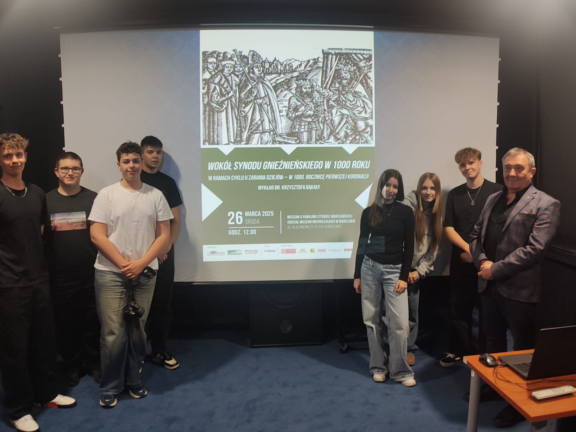 Następnie przenieśliśmy się w czasy Bolesława Chrobrego. Najpierw wysłuchaliśmy wykładu dra Krzysztofa Bąkały, a potem w nowoczesnym Muzeum Historii Polski wzięliśmy udział w warsztatach, upamiętniających 1000. rocznicę koronacji Bolesława Chrobrego. Zwiedziliśmy także wystawę.