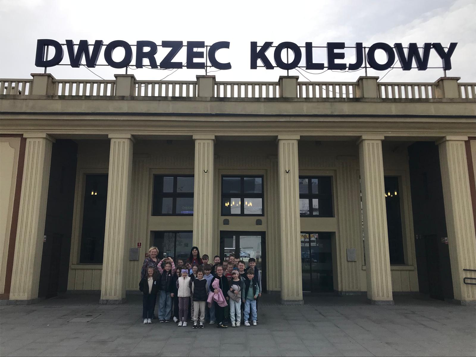 Po warsztatach uczniowie wyruszyli na wycieczkę na dworzec kolejowy. Podczas zwiedzania dzieci obserwowały pracę dyżurnego ruchu i kasjera biletowego, dowiedziały się jak bezpiecznie zachowywać się na peronie i w pociągu. Uczniowie mieli okazję nauczyć się jak odczytywać tablice z rozkładem jazdy pociągów. Dzieci z dużym zainteresowaniem śledziły elektroniczne tablice i szukały informacji o konkretnych pociągach. Dla wielu uczniów była to pierwsza okazja, by zobaczyć, jak działa prawdziwy rozkład jazdy i jak ważna jest punktualność w podróżowaniu koleją.