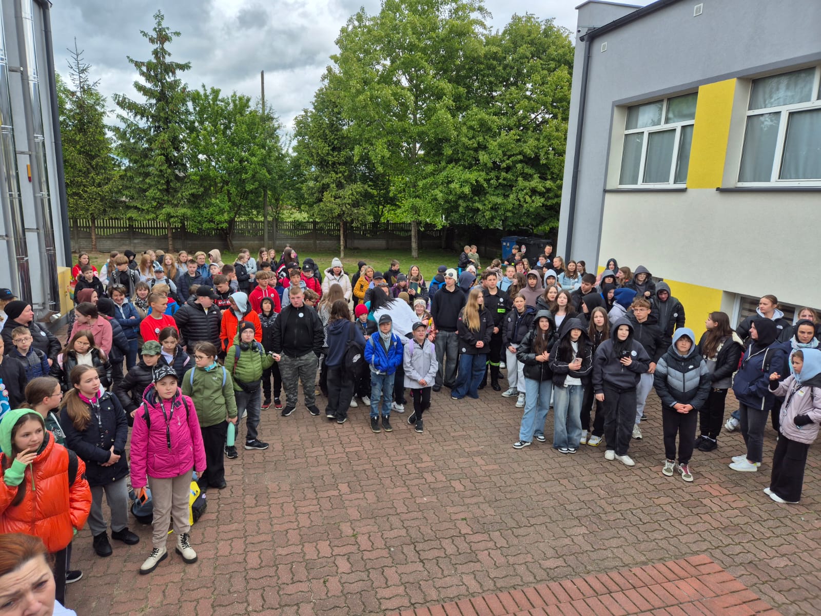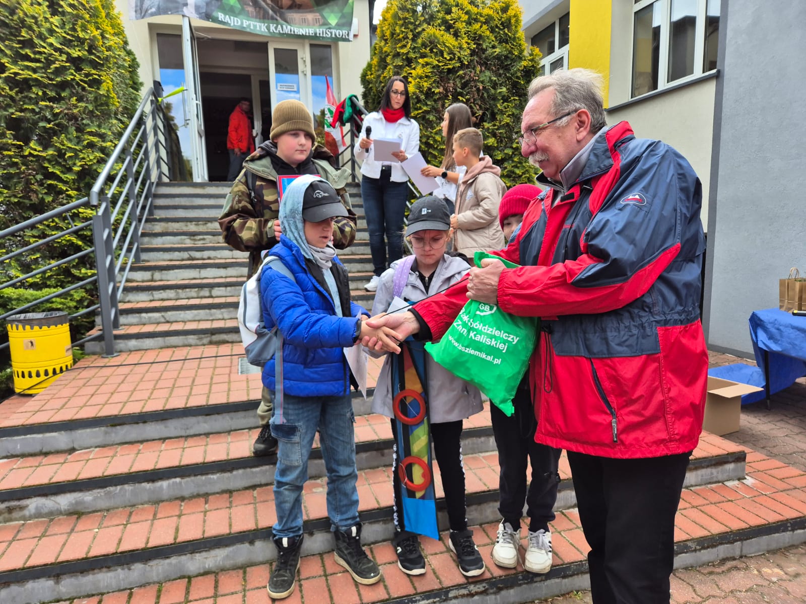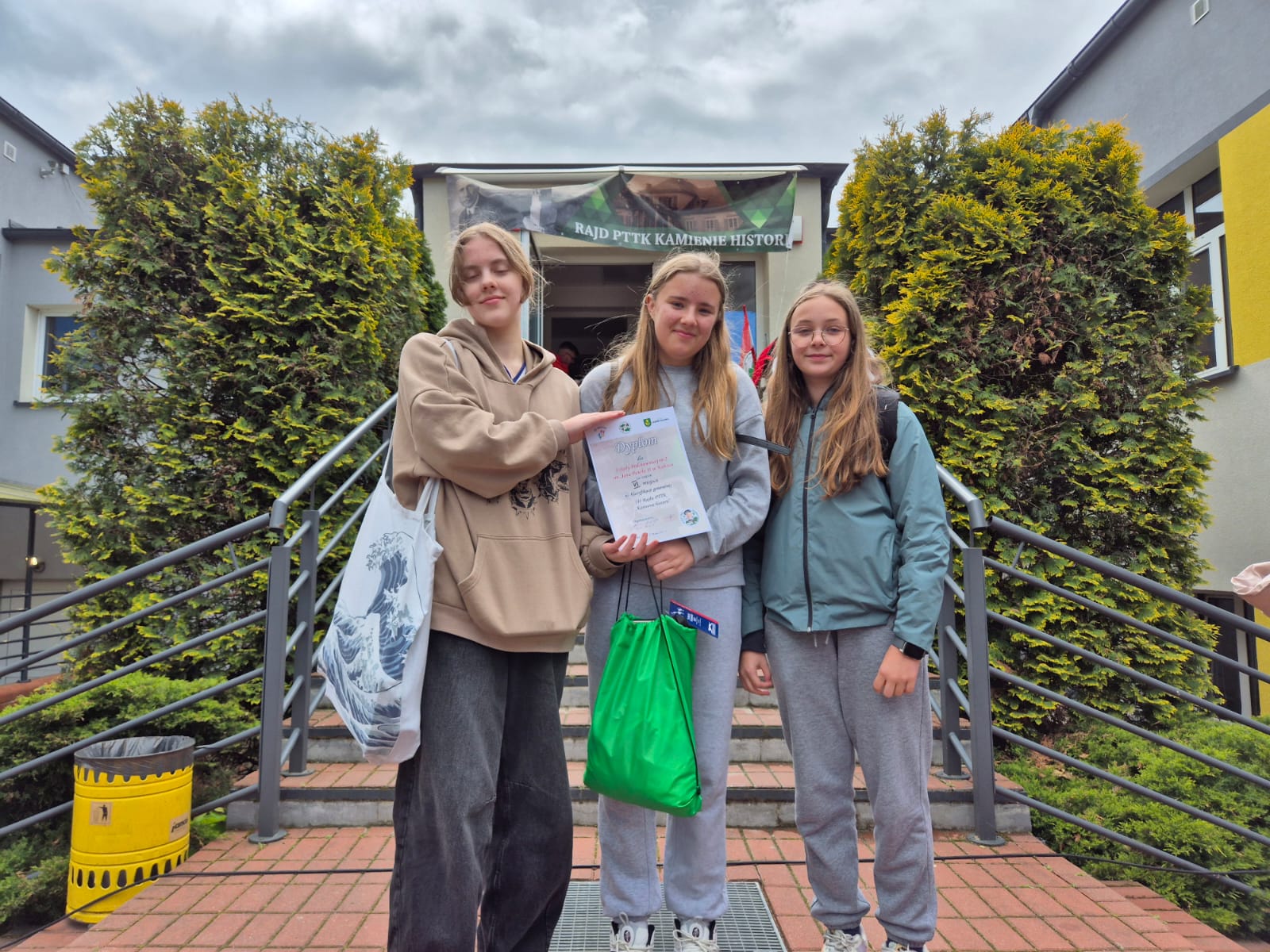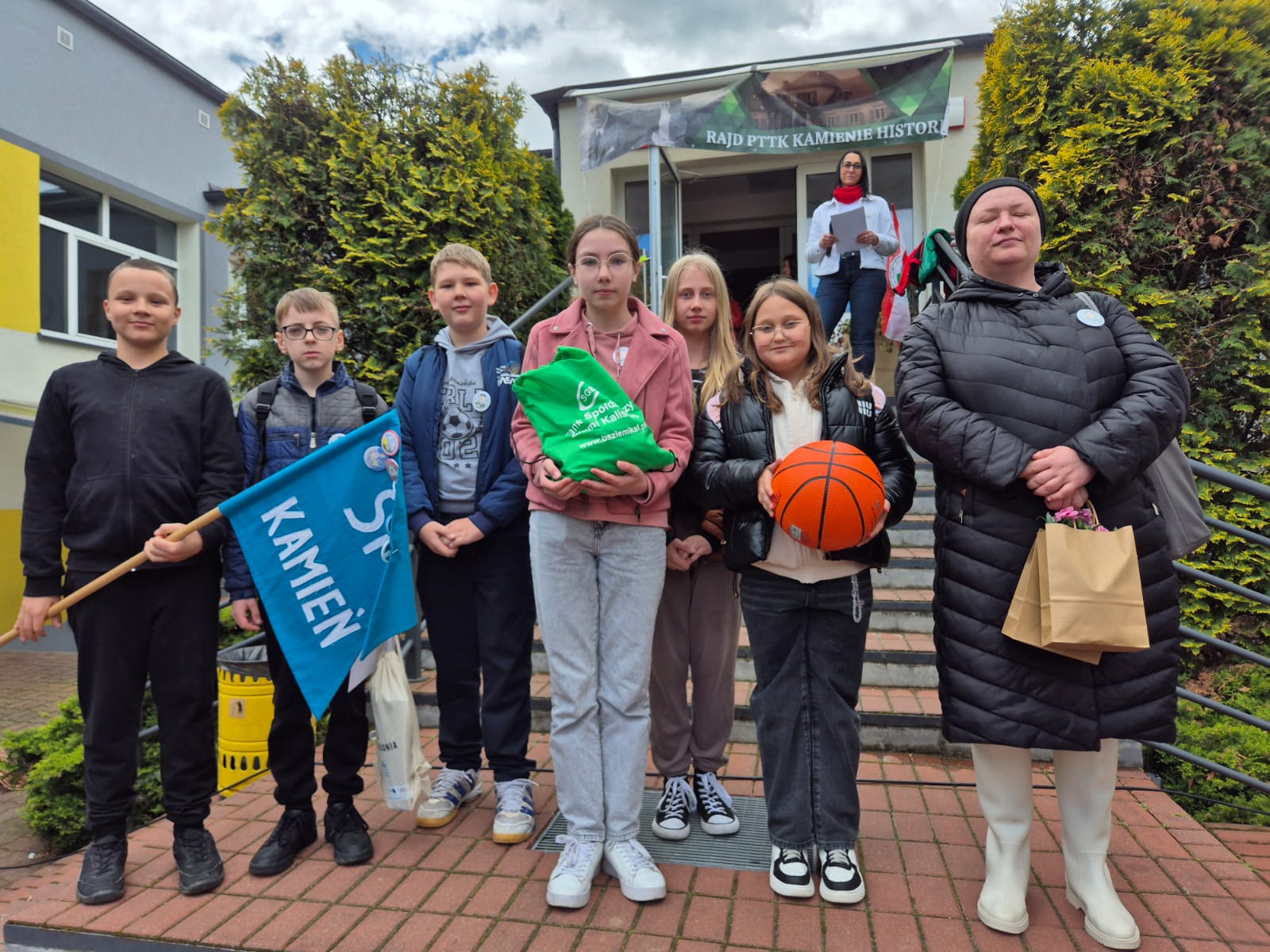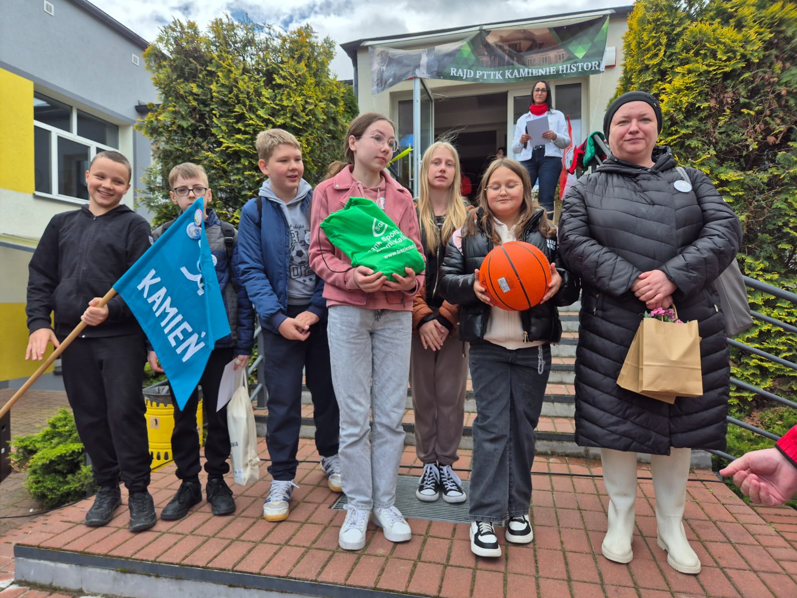 W sobotę 17 maja odbył się III rajd PTTK „Kamienie historii”. Tym razem, mimo nisprzyjajacej aury, do naszego Kamienia przyjechało aż 150 uczniów z 10 szkół. Uczestnikom trzeba było zapewnić wyzwania na najwyższym poziomie. W tym roku naszą wędrówkę rozpoczęliśmy od wizyty w Izbie Pamięci działającej przy Urzędzie Gminy Cekow - Kolonia. Tam uczestnicy usłyszeli m.in. o 25 Dywizji Piechoty. Później zapoznali się z podstawowymi informacjami o gminie. Po przyjeździe do Kamienia czekaly na wszystkich kolejne atrakcje. Wielka popularnością cieszyło się Koło Gospodyn Wiejskich. Panie przygotowały dla uczestnikow swojskie jadlo, m.in. chlebek własnego wypieku ze smalcem, ogóreczki małosolne. Nic dziwnego, że na tym stanowisku wszystkie grupy zdobyły maksymalną liczbę punktów. Zainteresowanie wzbudzilo stanowisko wędkarskie. Tutaj Igor, Krystain i Michal opowiadali o swojej pasji, jaką jest łowienie ryb. Nie mogło zabraknąć zadań z rolnictwa, zmagań na boisku wielofunkcyjnym czy łamania głów na boisku matematycznym. Chwile relaksu zapewniły uczestnikom alpaki, które chetnie spożywały machewkę, którą były przez wszystkich karmione. Na koniec na wszystkich przemarżniętych i zmęczonych rajdowiczów czekały pyszne zupki, kiełbaski z grila, slodkości i owoce.
