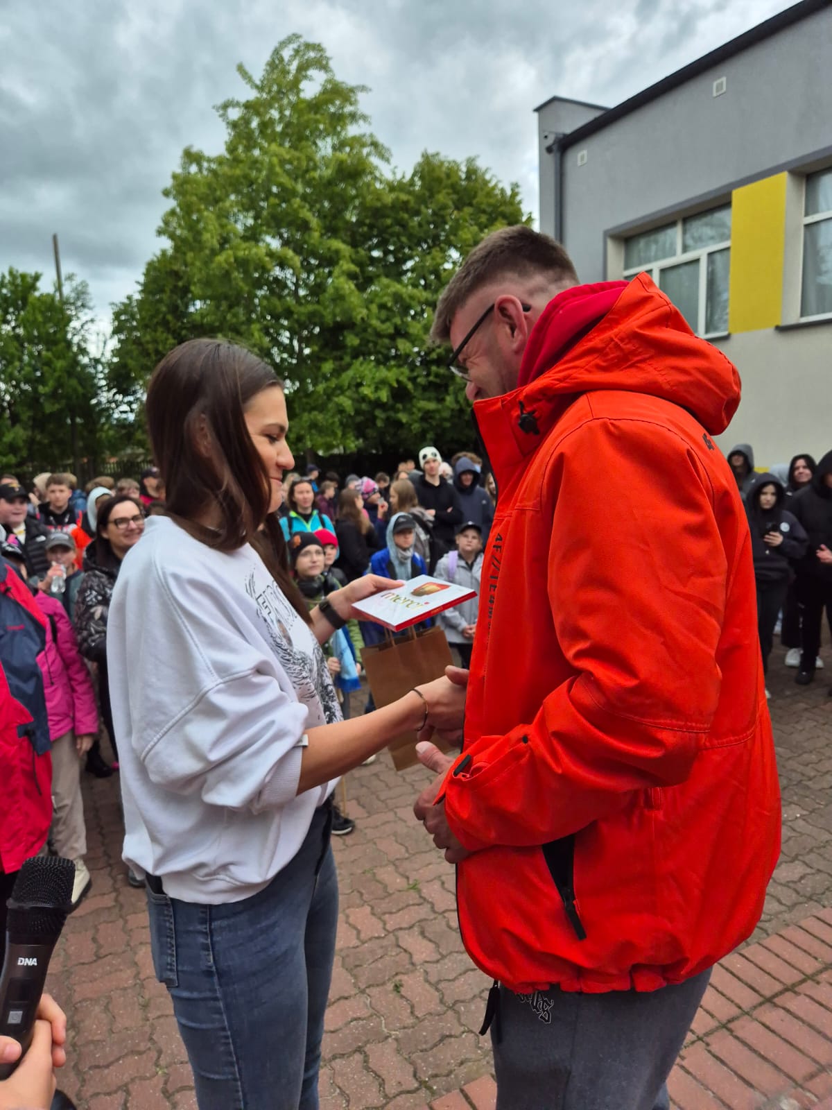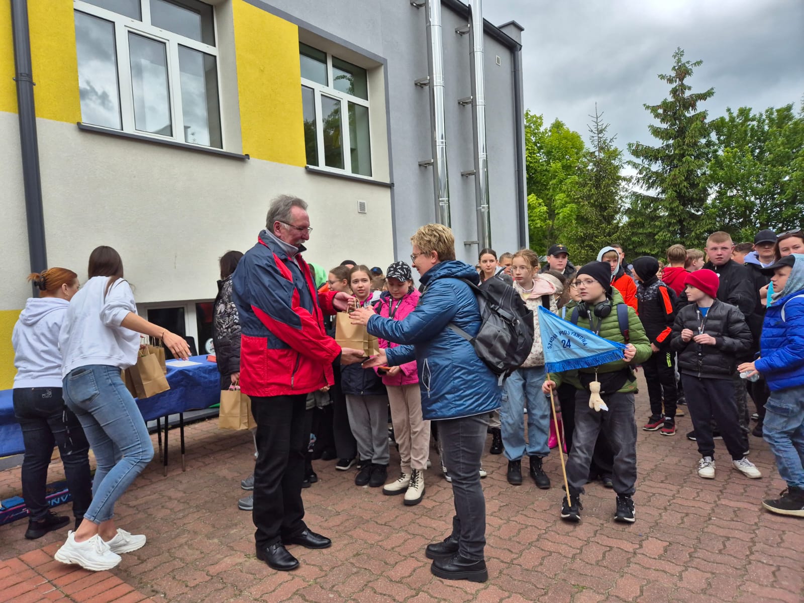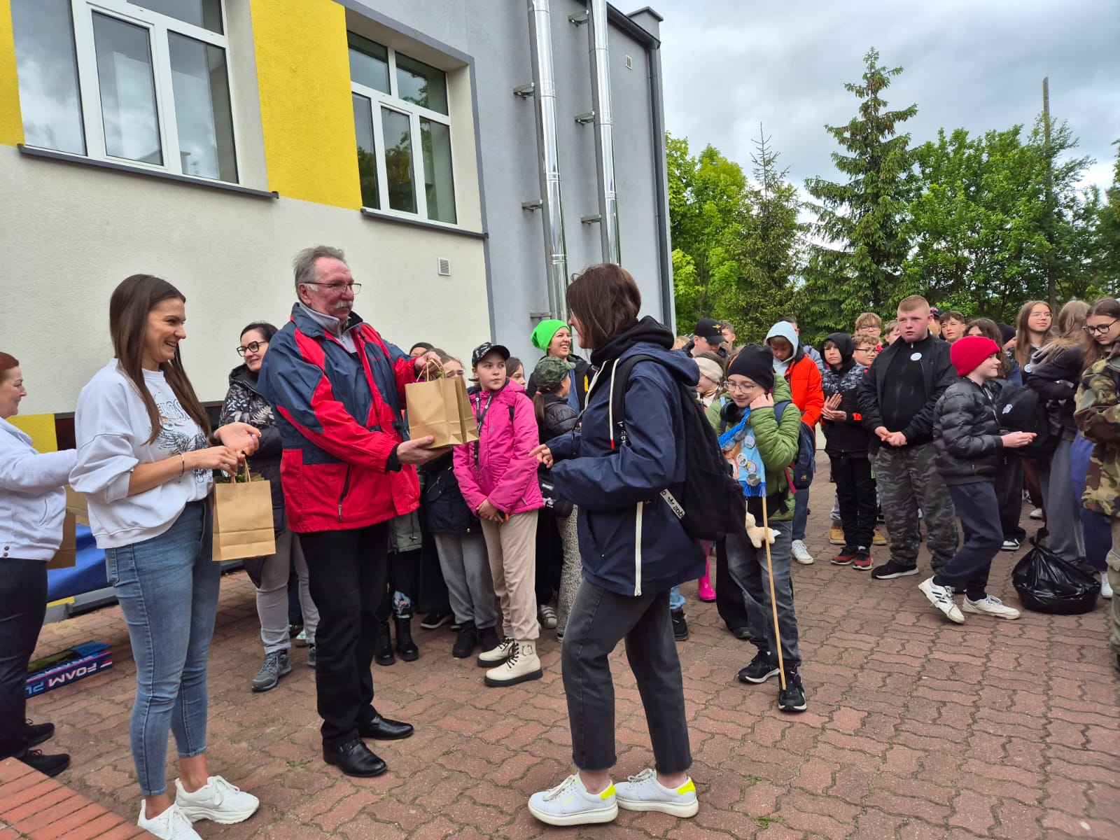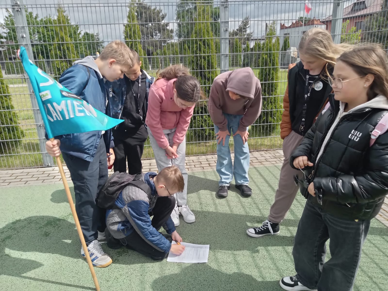 W sobotę 17 maja odbył się III rajd PTTK „Kamienie historii”. Tym razem, mimo nisprzyjajacej aury, do naszego Kamienia przyjechało aż 150 uczniów z 10 szkół. Uczestnikom trzeba było zapewnić wyzwania na najwyższym poziomie. W tym roku naszą wędrówkę rozpoczęliśmy od wizyty w Izbie Pamięci działającej przy Urzędzie Gminy Cekow - Kolonia. Tam uczestnicy usłyszeli m.in. o 25 Dywizji Piechoty. Później zapoznali się z podstawowymi informacjami o gminie. Po przyjeździe do Kamienia czekaly na wszystkich kolejne atrakcje. Wielka popularnością cieszyło się Koło Gospodyn Wiejskich. Panie przygotowały dla uczestnikow swojskie jadlo, m.in. chlebek własnego wypieku ze smalcem, ogóreczki małosolne. Nic dziwnego, że na tym stanowisku wszystkie grupy zdobyły maksymalną liczbę punktów. Zainteresowanie wzbudzilo stanowisko wędkarskie. Tutaj Igor, Krystain i Michal opowiadali o swojej pasji, jaką jest łowienie ryb. Nie mogło zabraknąć zadań z rolnictwa, zmagań na boisku wielofunkcyjnym czy łamania głów na boisku matematycznym. Chwile relaksu zapewniły uczestnikom alpaki, które chetnie spożywały machewkę, którą były przez wszystkich karmione. Na koniec na wszystkich przemarżniętych i zmęczonych rajdowiczów czekały pyszne zupki, kiełbaski z grila, slodkości i owoce.