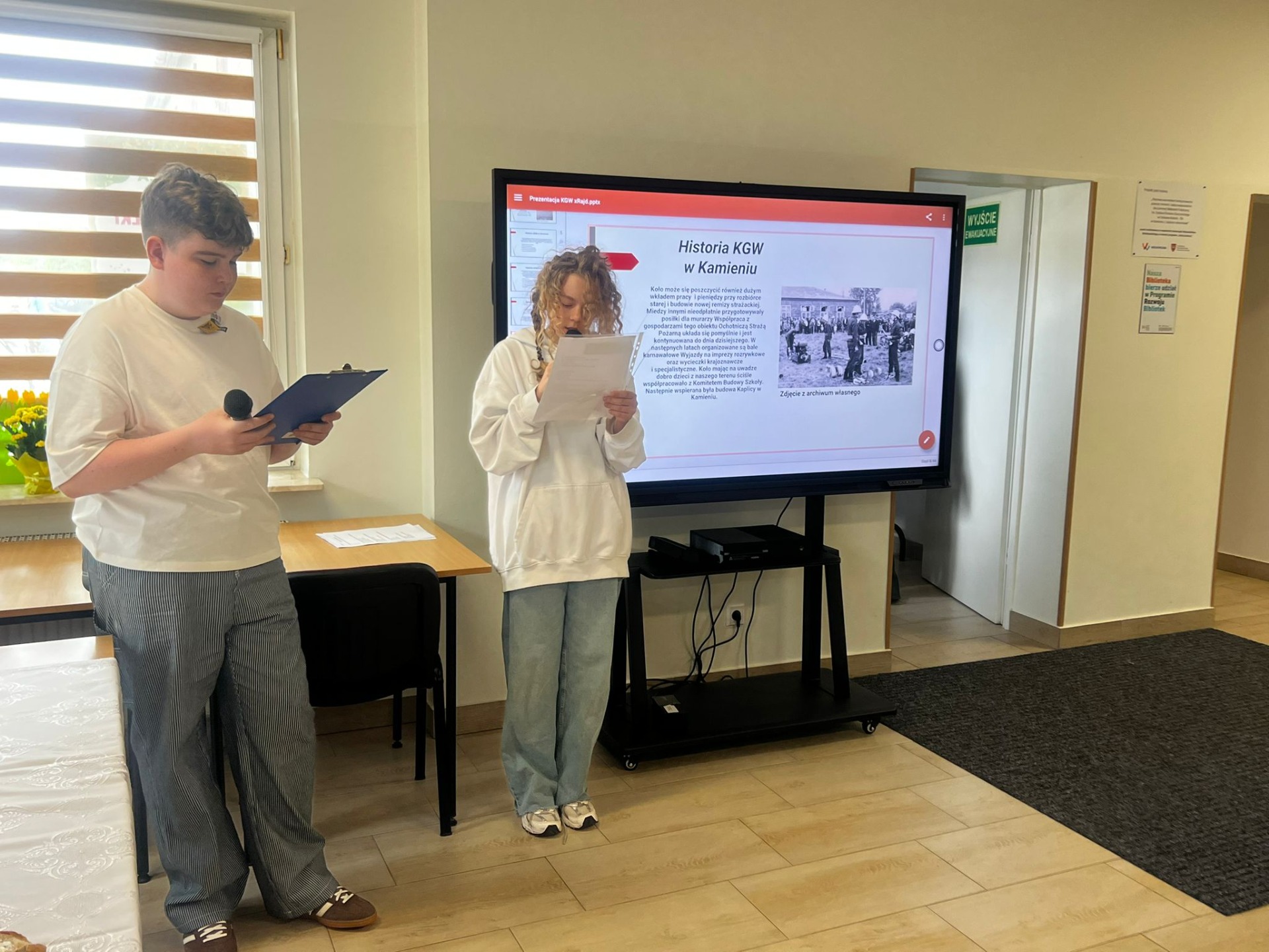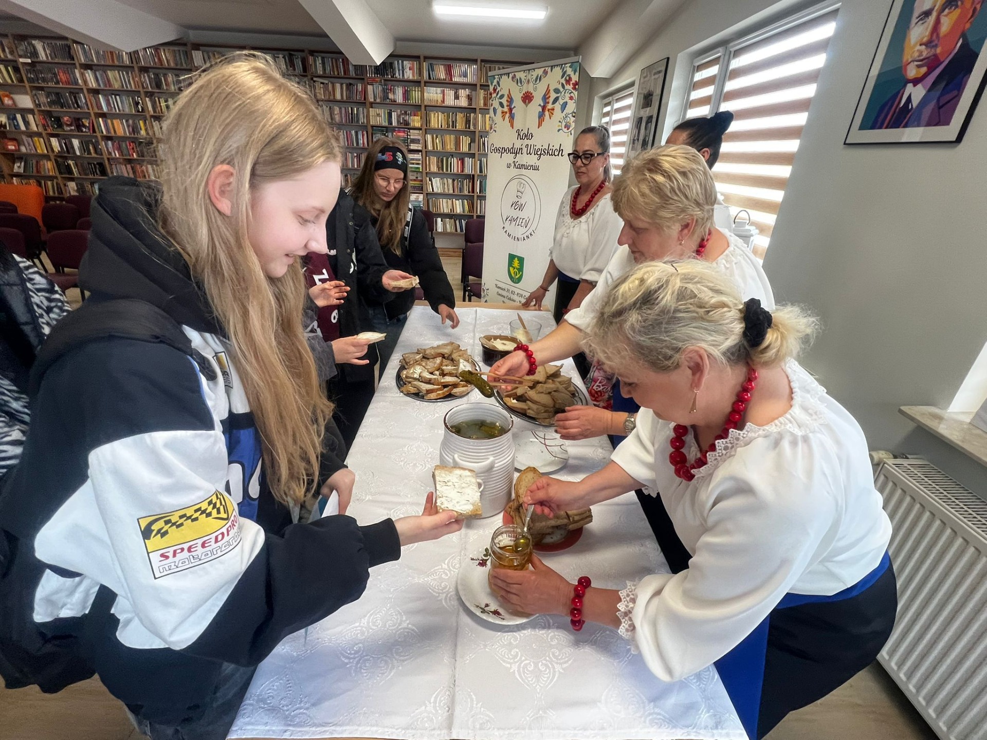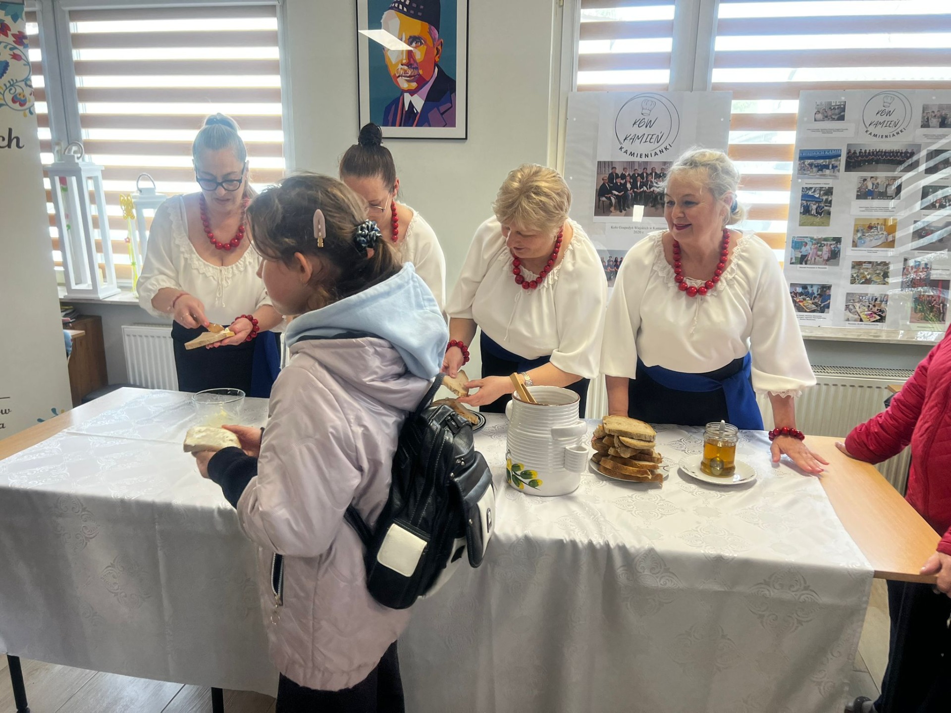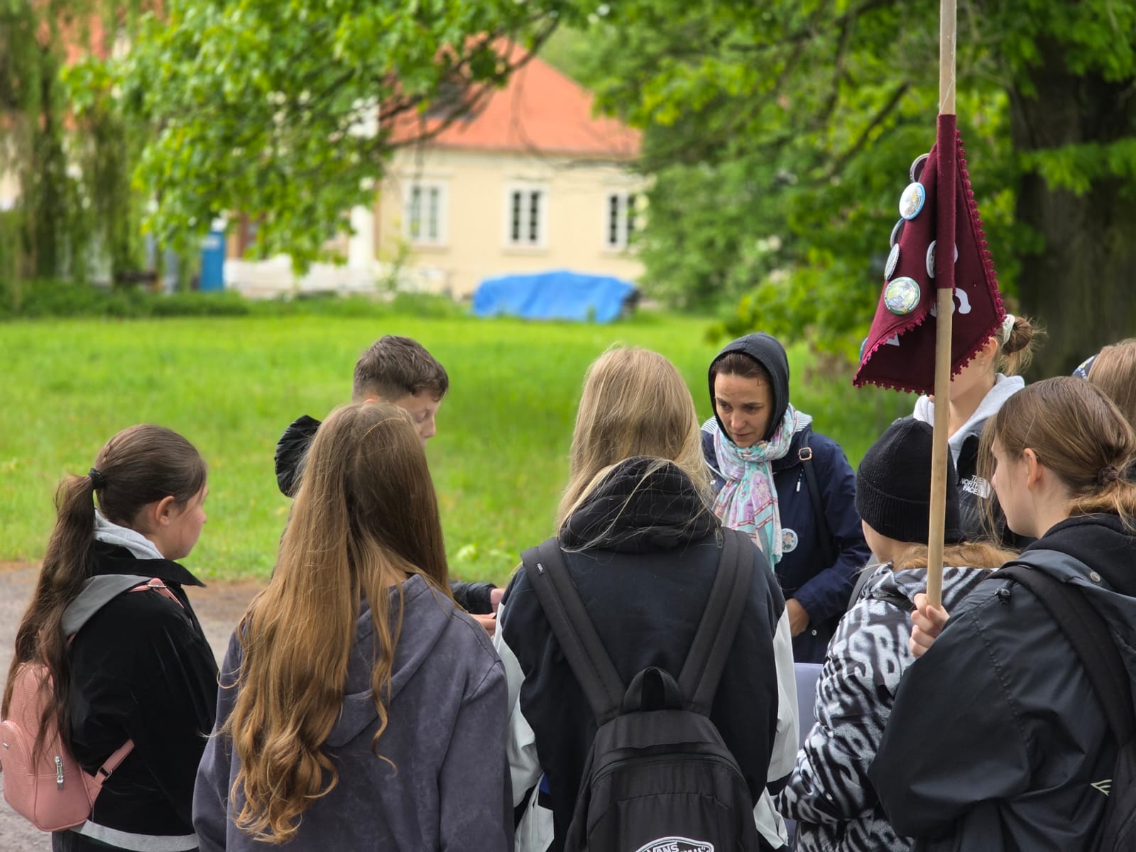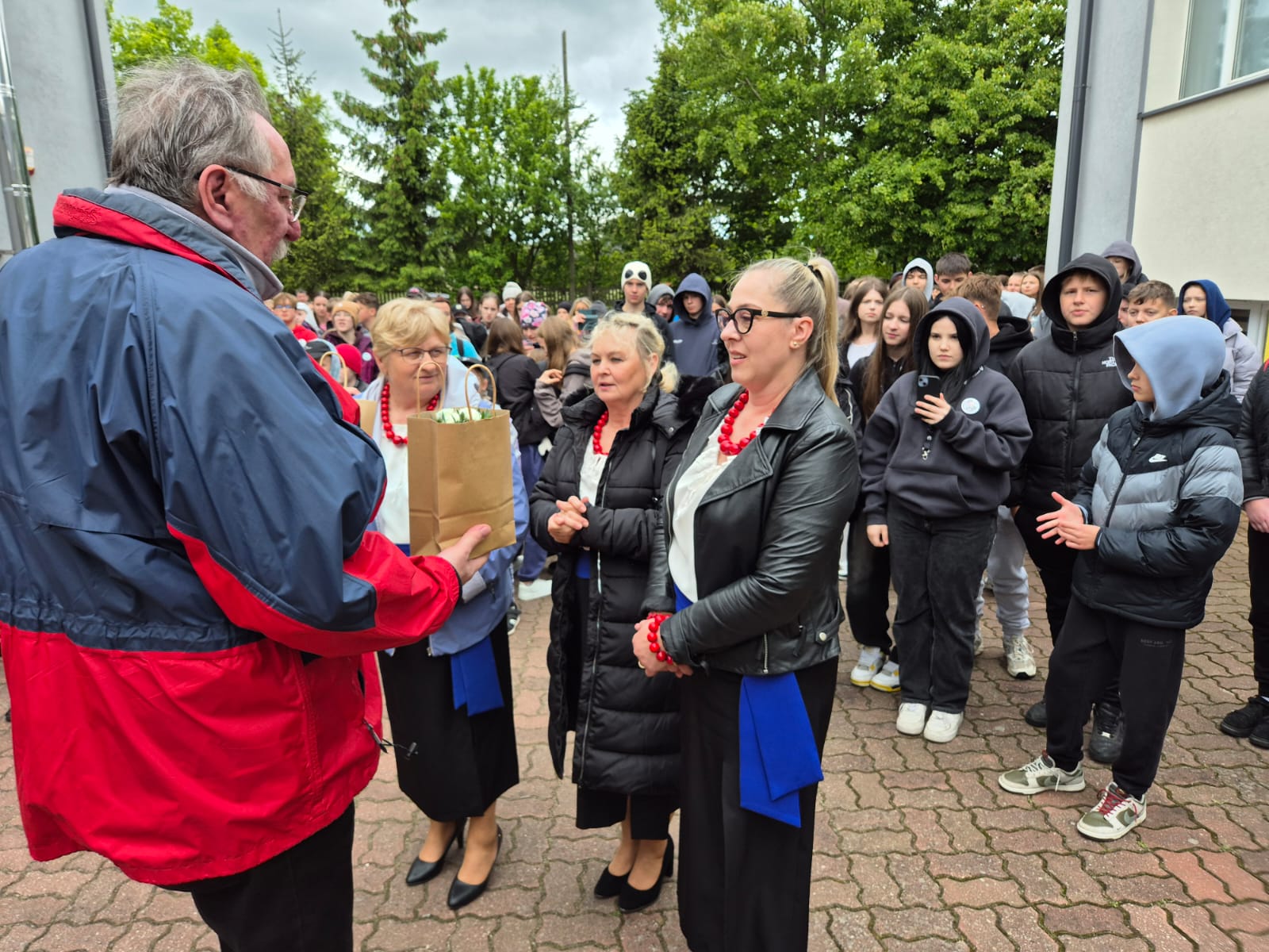 W sobotę 17 maja odbył się III rajd PTTK „Kamienie historii”. Tym razem, mimo nisprzyjajacej aury, do naszego Kamienia przyjechało aż 150 uczniów z 10 szkół. Uczestnikom trzeba było zapewnić wyzwania na najwyższym poziomie. W tym roku naszą wędrówkę rozpoczęliśmy od wizyty w Izbie Pamięci działającej przy Urzędzie Gminy Cekow - Kolonia. Tam uczestnicy usłyszeli m.in. o 25 Dywizji Piechoty. Później zapoznali się z podstawowymi informacjami o gminie. Po przyjeździe do Kamienia czekaly na wszystkich kolejne atrakcje. Wielka popularnością cieszyło się Koło Gospodyn Wiejskich. Panie przygotowały dla uczestnikow swojskie jadlo, m.in. chlebek własnego wypieku ze smalcem, ogóreczki małosolne. Nic dziwnego, że na tym stanowisku wszystkie grupy zdobyły maksymalną liczbę punktów. Zainteresowanie wzbudzilo stanowisko wędkarskie. Tutaj Igor, Krystain i Michal opowiadali o swojej pasji, jaką jest łowienie ryb. Nie mogło zabraknąć zadań z rolnictwa, zmagań na boisku wielofunkcyjnym czy łamania głów na boisku matematycznym. Chwile relaksu zapewniły uczestnikom alpaki, które chetnie spożywały machewkę, którą były przez wszystkich karmione. Na koniec na wszystkich przemarżniętych i zmęczonych rajdowiczów czekały pyszne zupki, kiełbaski z grila, slodkości i owoce.