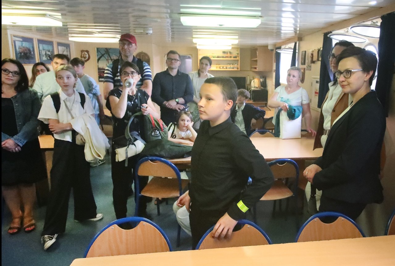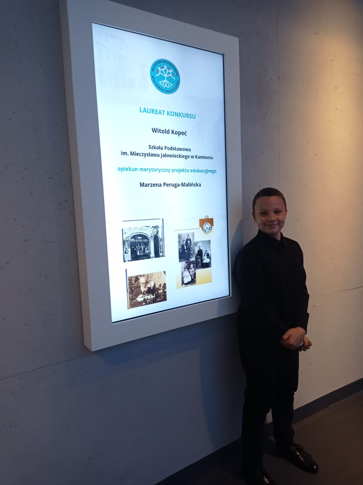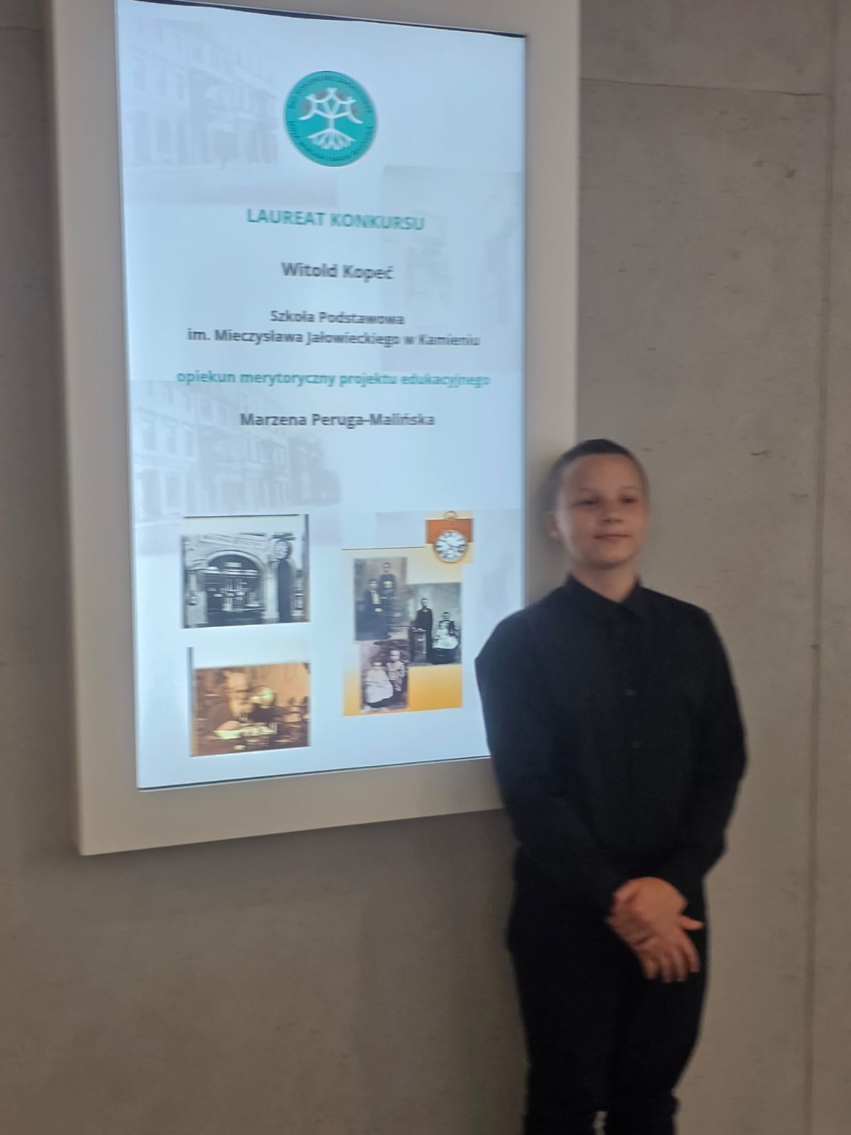 W piątek, 6 czerwca 2025r., nasz uczeń Witold Kopeć wraz z mamą oraz p. Marzeną Perugą - Malińską wziął udział w Gali Finałowej 4 edycji Ogólnopolskiego Konkursu Genealogicznego "Bez korzeni nie zakwitniesz. Moja Wielka i Mała Ojczyzna". Konkurs to wspólne przedsięwzięcie Archiwów Państwowych oraz Ministerstwa Edukacji Narodowej. Koordynatorem tegorocznej edycji było Archiwum Państwowe w Szczecinie. Gala odbyła się we wnętrzu Fabryki Wody, a przed publicznością wystąpił Zespół Pieśni i Tańca "Szczecinianie". Zaraz po ceremonii wręczenia nagród laureaci wraz z opiekunami mogli zwiedzić Edukatorium Fabryki. Następnie wyruszyli do siedziby Politechniki Morskiej, by poznać ofertę edukacyjną uczelni i jeszcze bardziej poczuć morski charakter Szczecina. Wśród zaplanowanych atrakcji były symulatory mostka i silnika statku oraz zwiedzanie statku szkoleniowego "Nawigator XXI". Dla ucznia naszej szkoły był to niezapomniany dzień. Witek udzielił aż trzech wywiadów. Jego praca wzbudziła szczególne zainteresowanie.