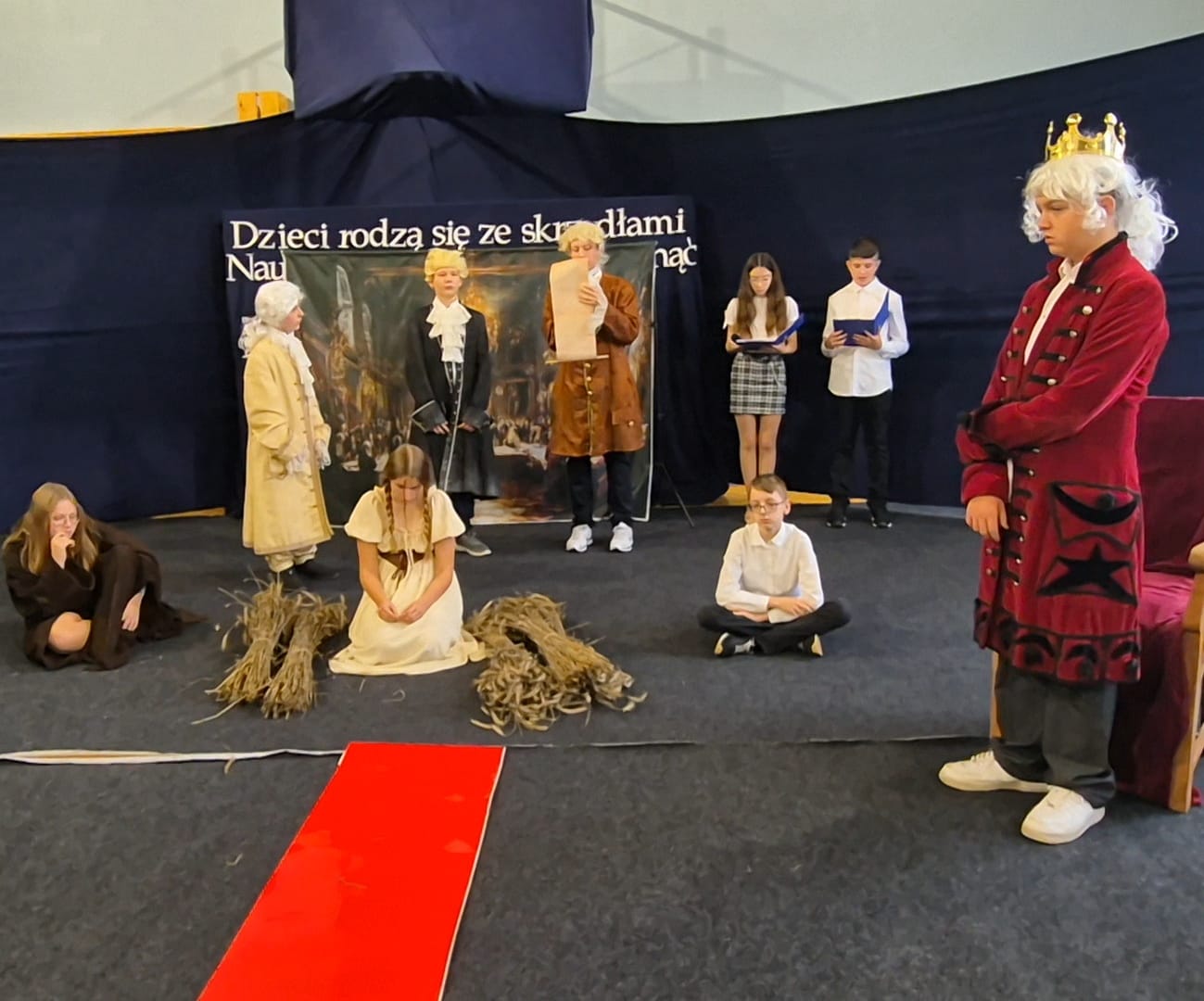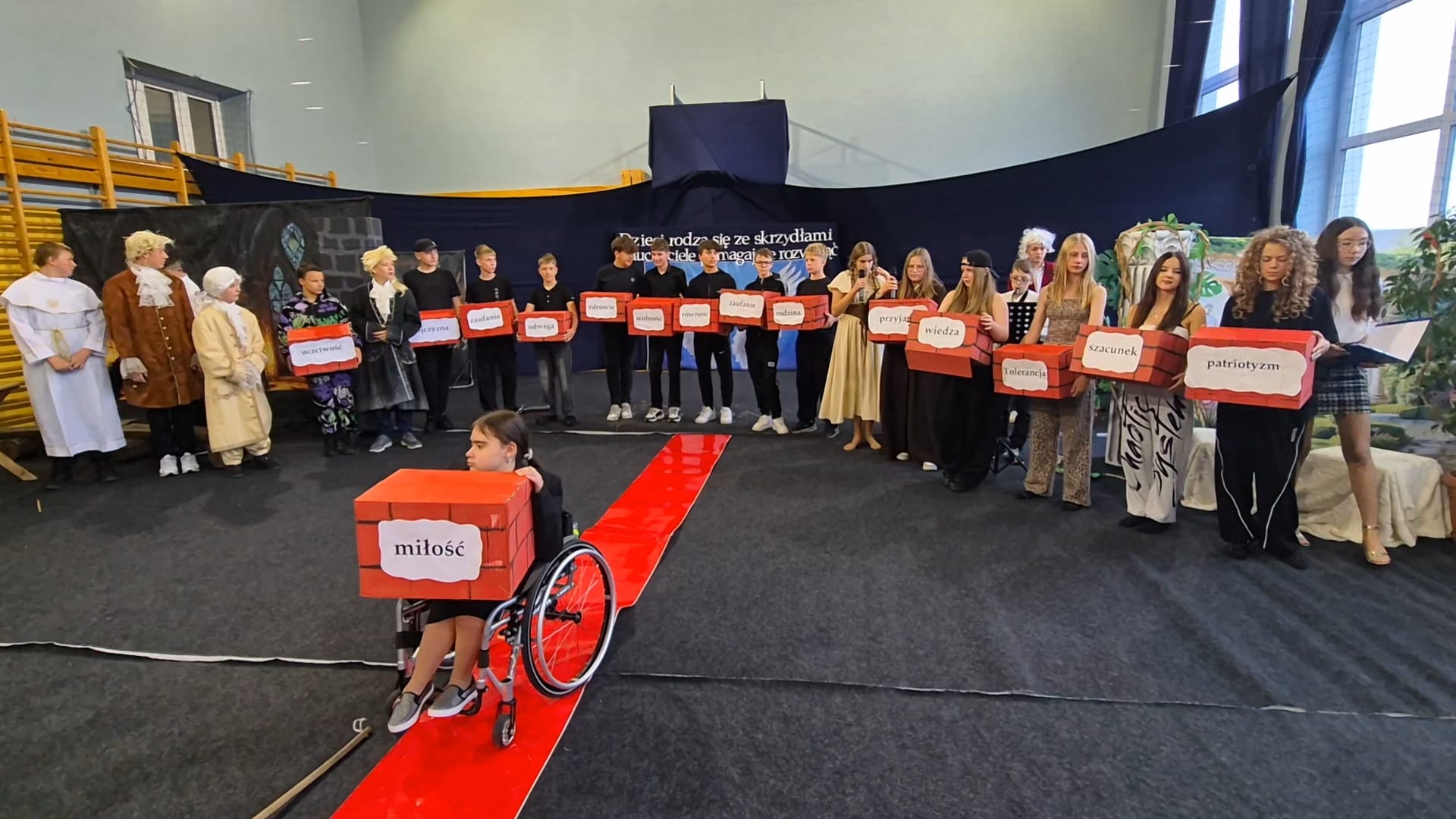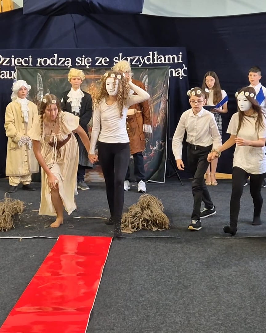 Każda scena ukazywała, jak wyglądała nauka i rola nauczyciela w różnych okresach historycznych: od mędrców starożytnej Grecji, przez średniowieczne klasztory, szkoły oświeceniowe, aż po współczesne klasy z tablicami interaktywnymi i "młodomową" XXI wieku. Nie zabrakło również humorystycznych akcentów i wzruszających podziękowań skierowanych do naszych pedagogów.
