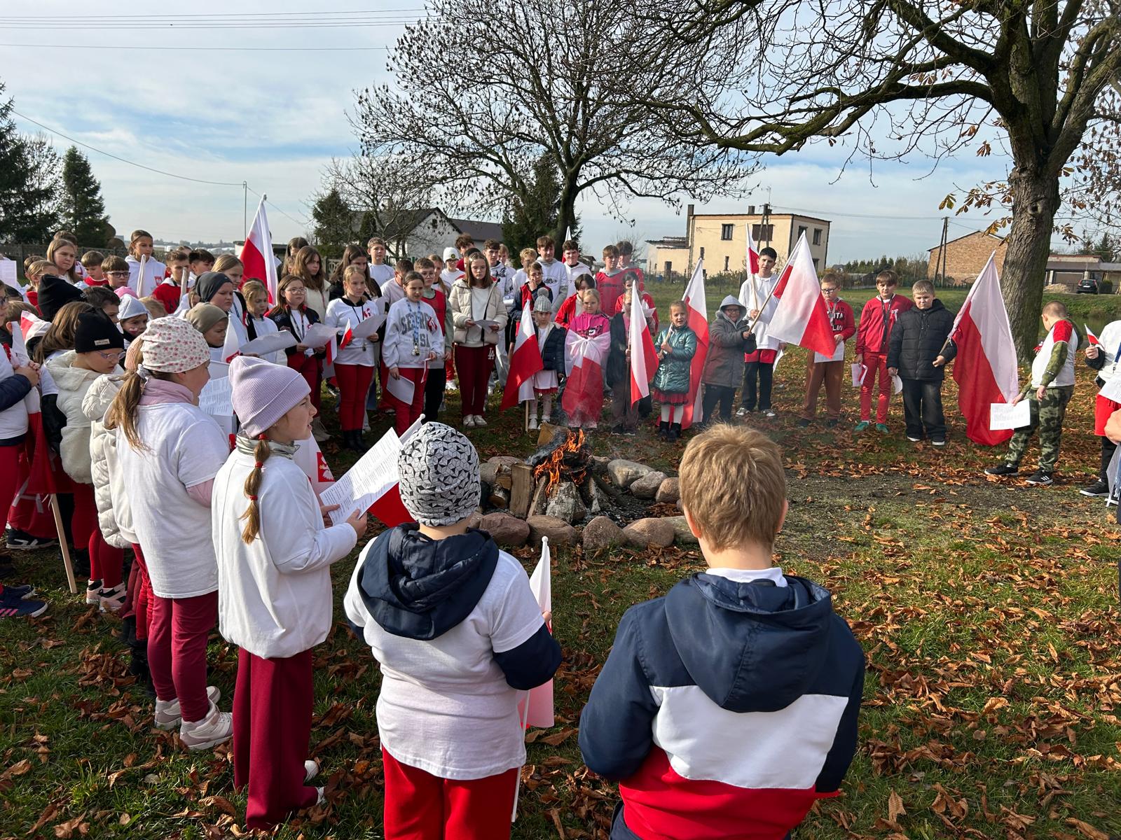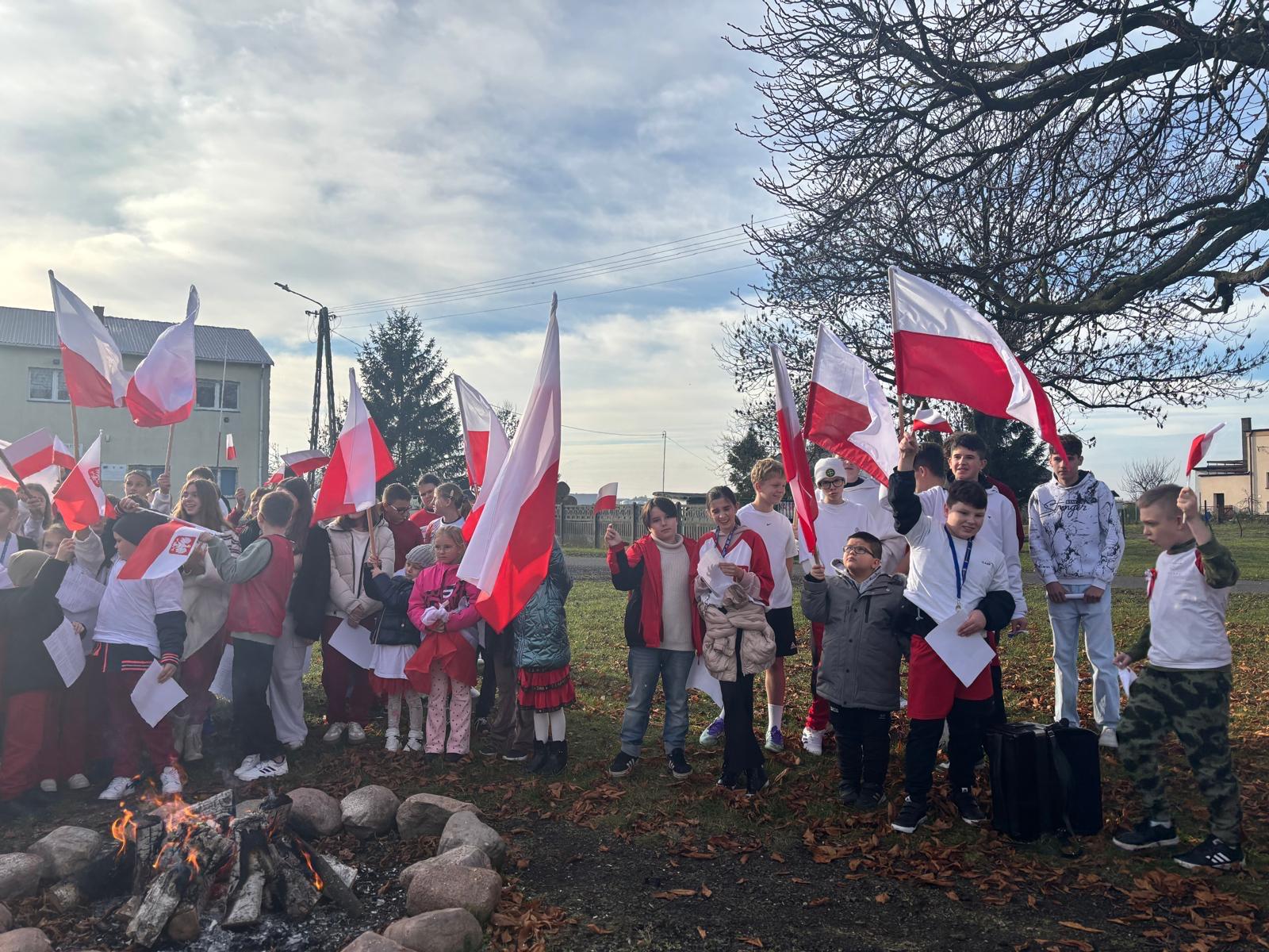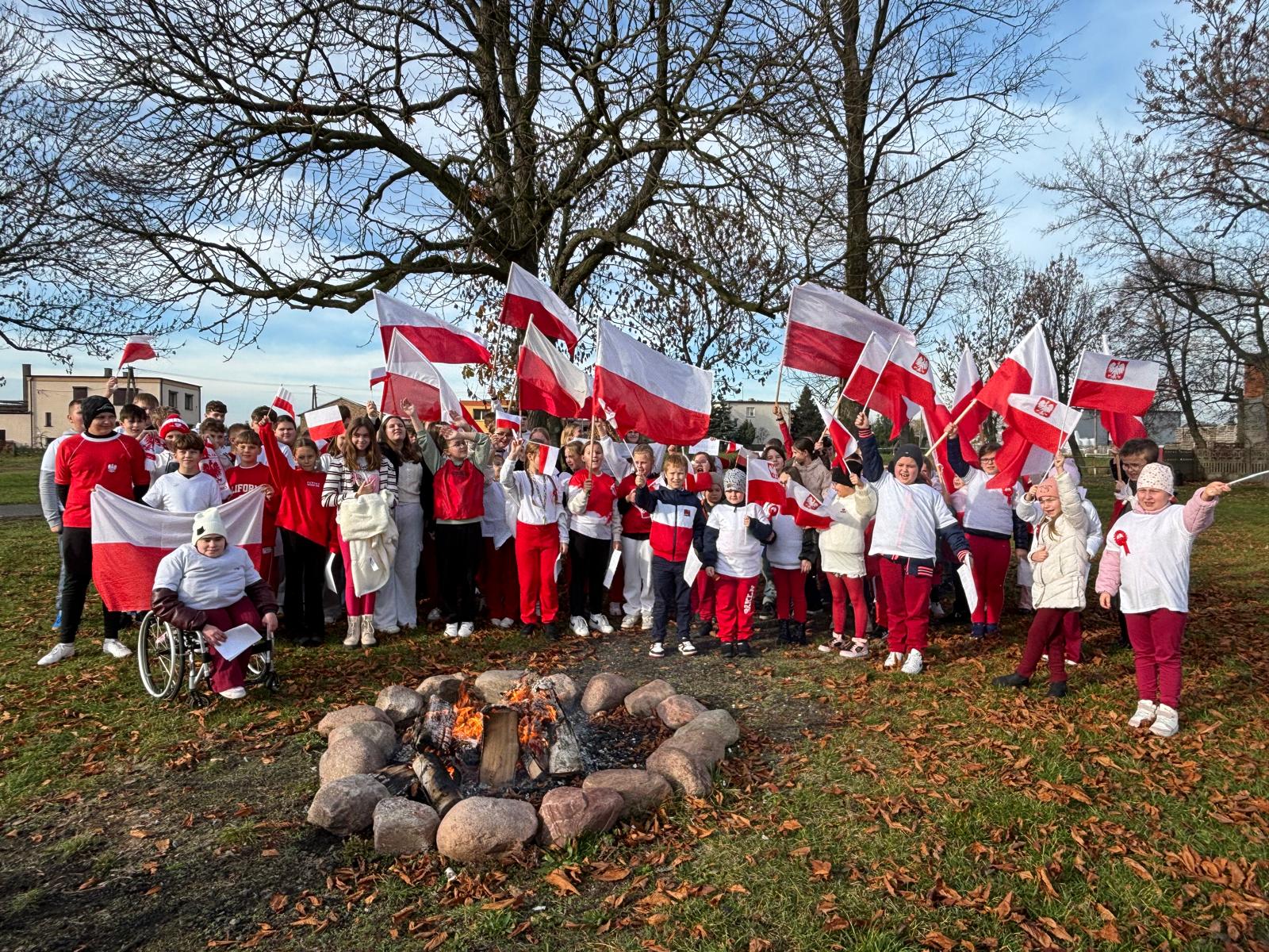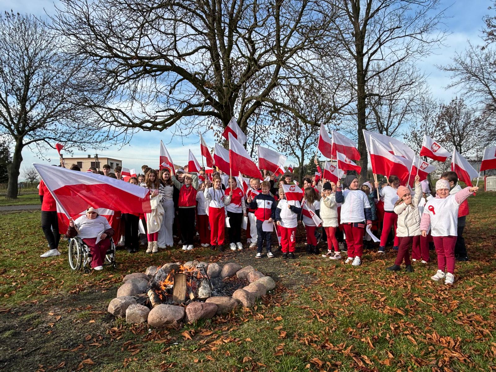 Z okazji Święta Niepodległości uczniowie klas I-VIII naszej szkoły wzięli udział w „Patriotycznym Biegu z Flagą”, oraz śpiewaniu pieśni patriotycznych przy ognisku. Dodatkowo pani Marzena Peruga - Malińska przeprowadziła krótką lekcję historii "Od rozbiorów do Niepodległości"