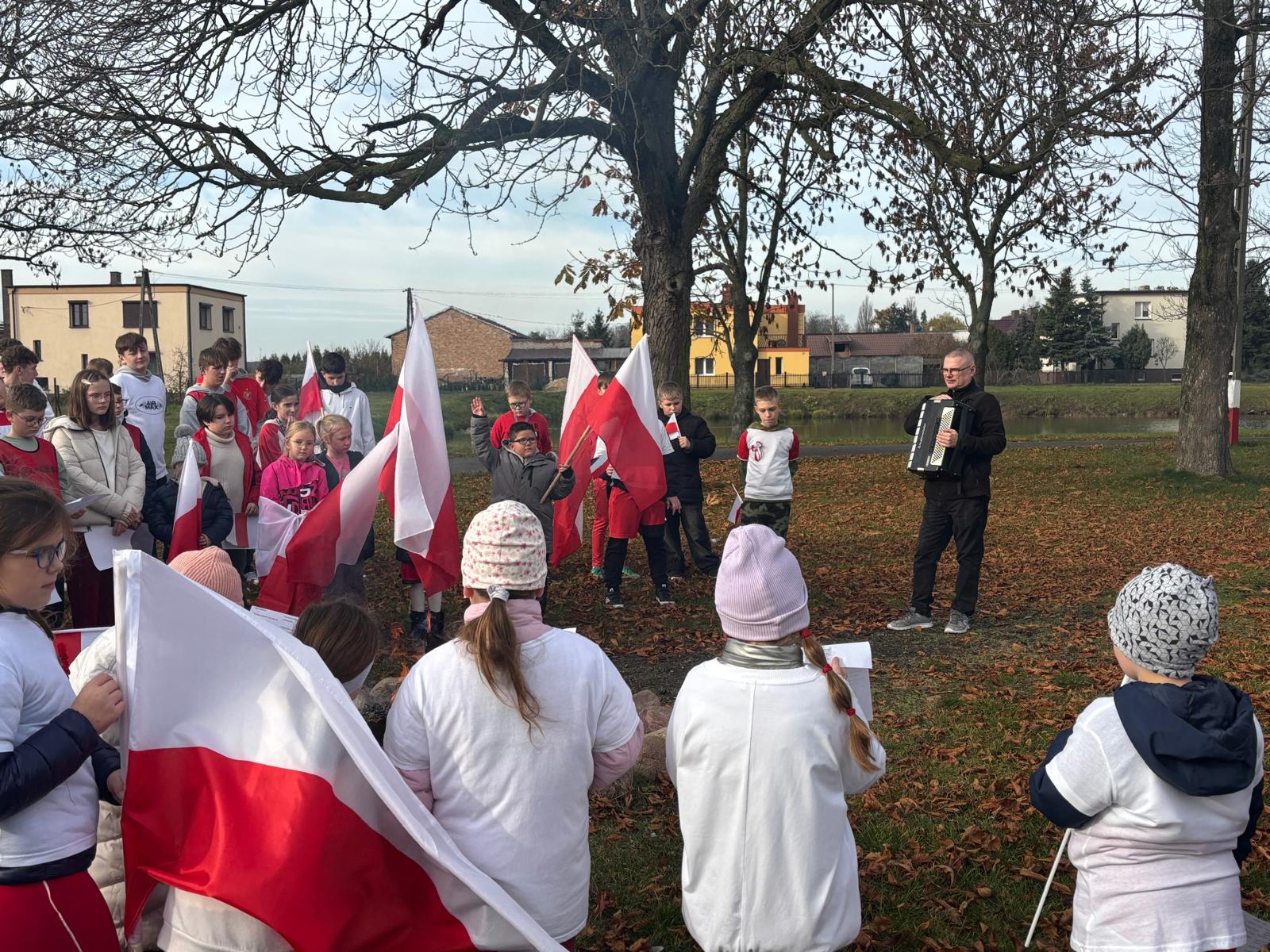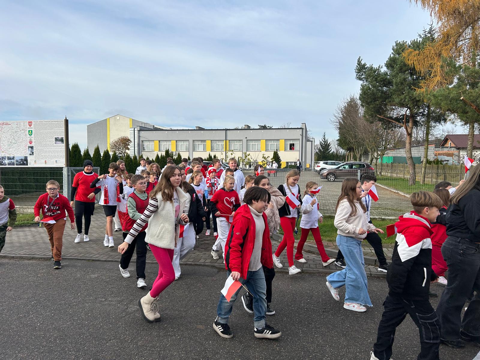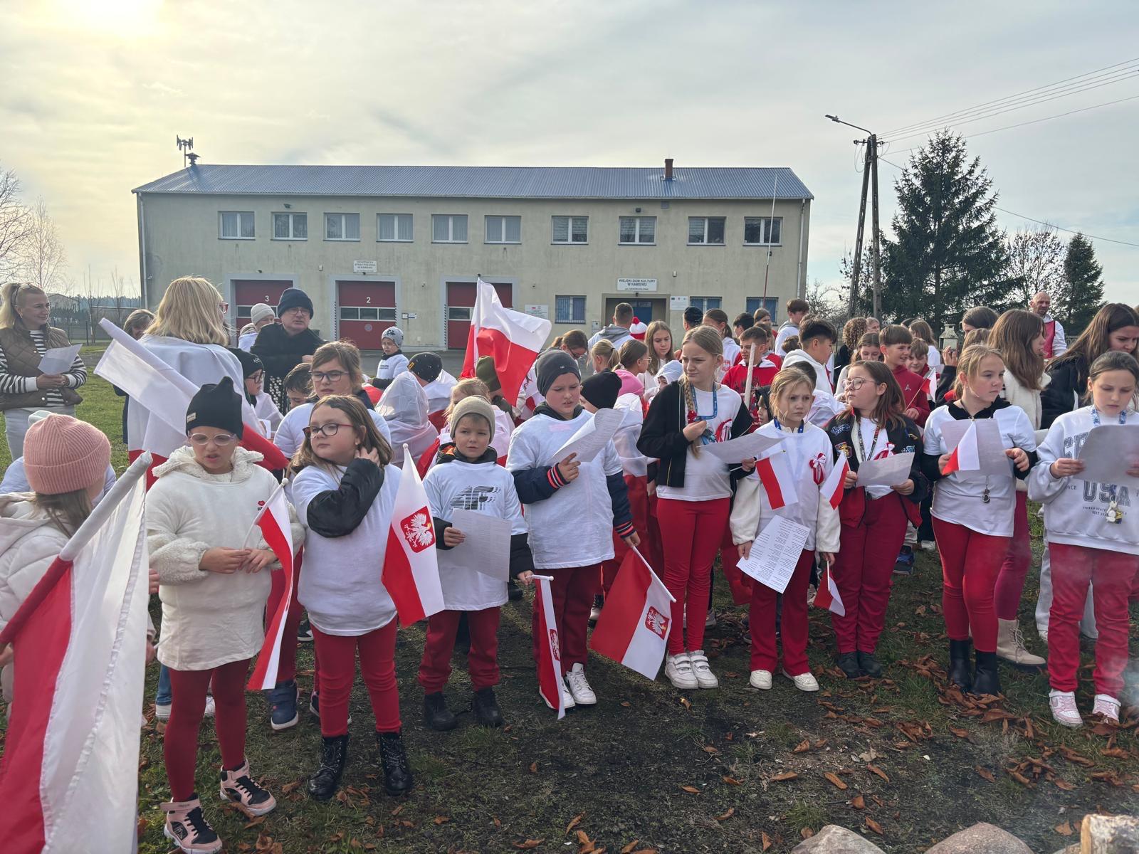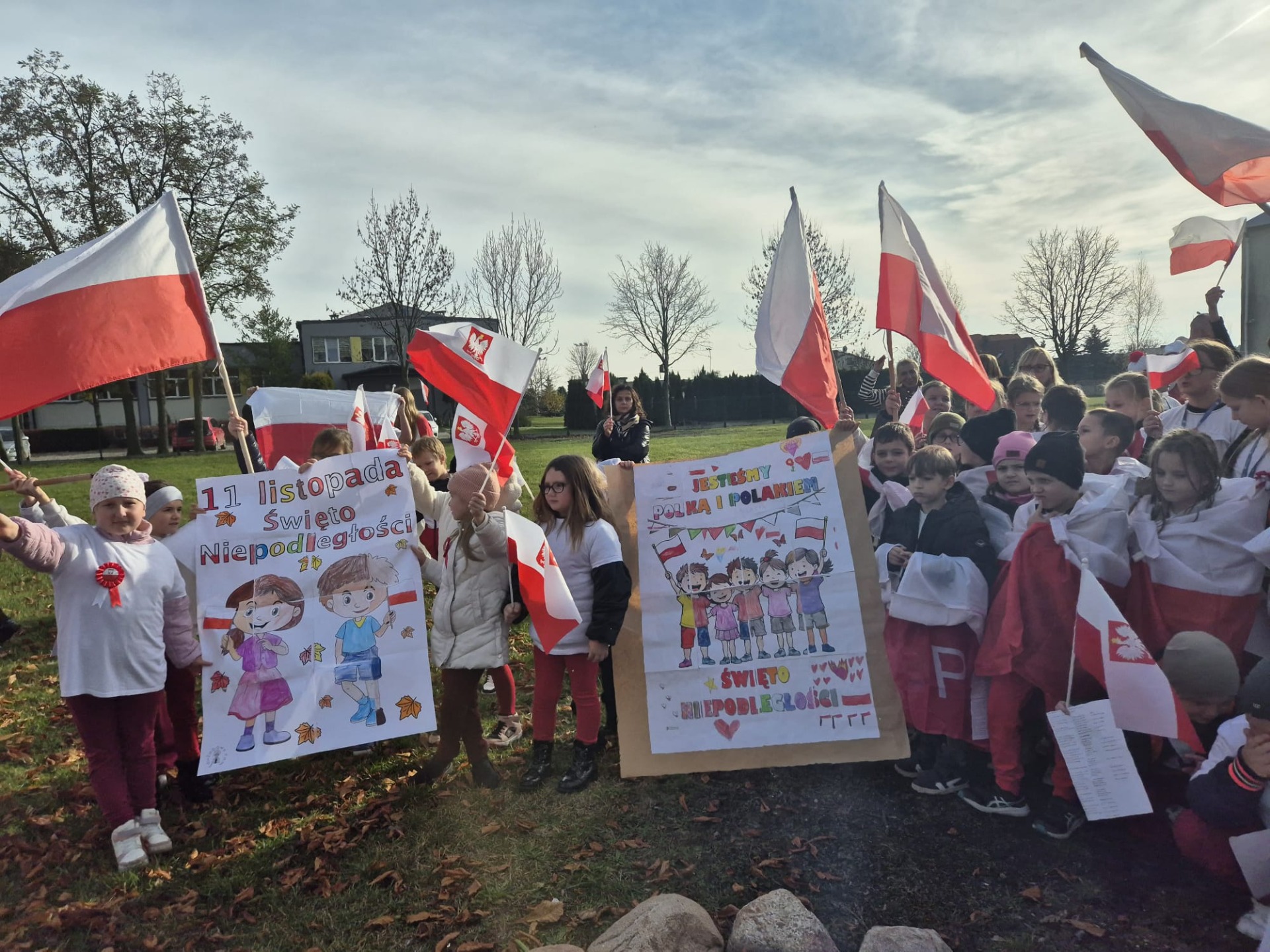 Z okazji Święta Niepodległości uczniowie klas I-VIII naszej szkoły wzięli udział w „Patriotycznym Biegu z Flagą”, oraz śpiewaniu pieśni patriotycznych przy ognisku. Dodatkowo pani Marzena Peruga - Malińska przeprowadziła krótką lekcję historii "Od rozbiorów do Niepodległości"
