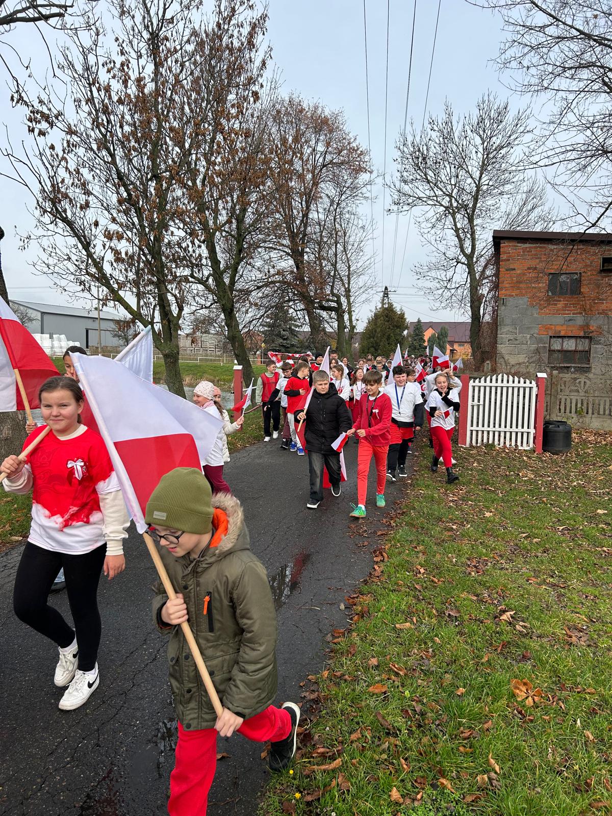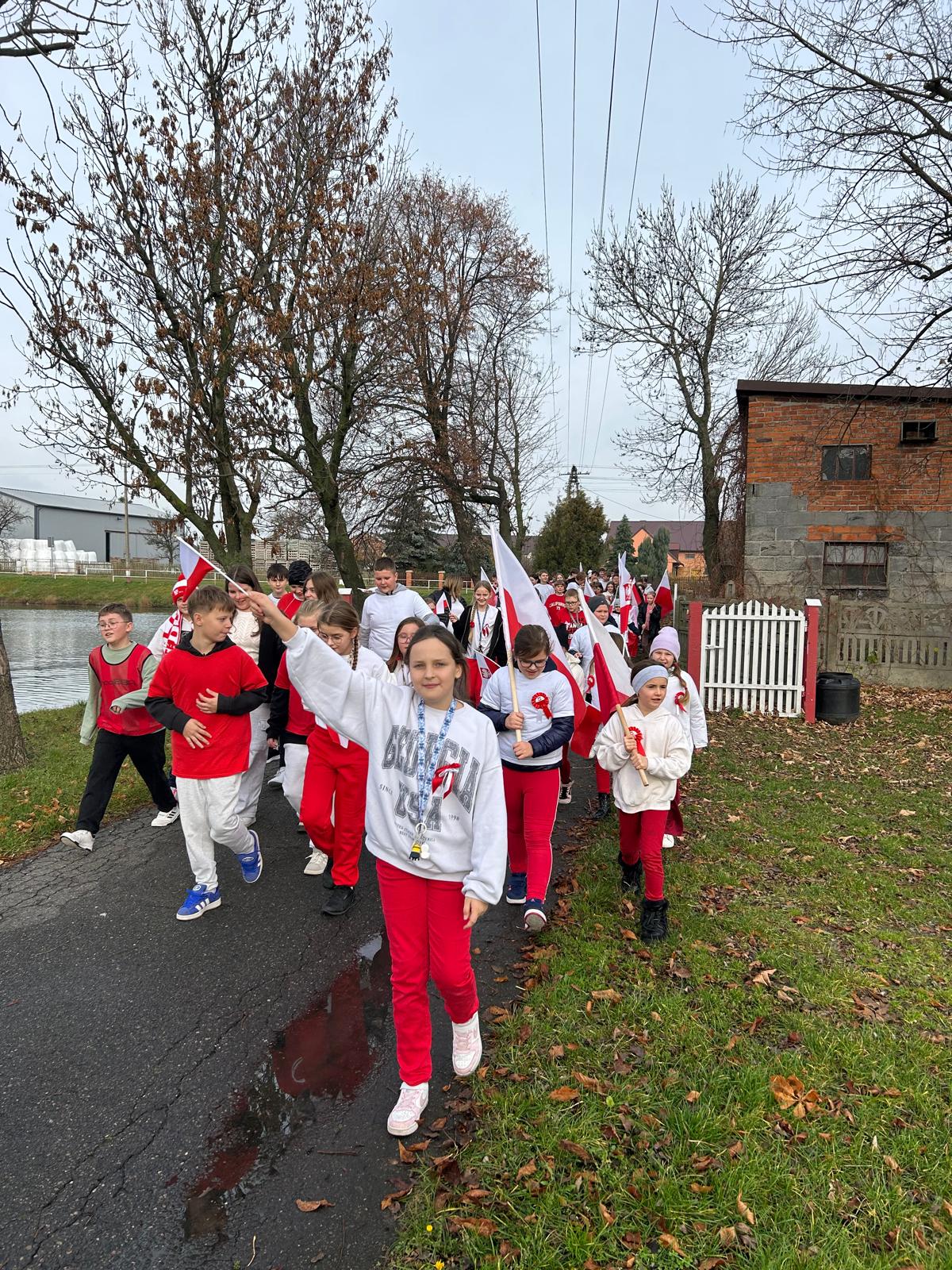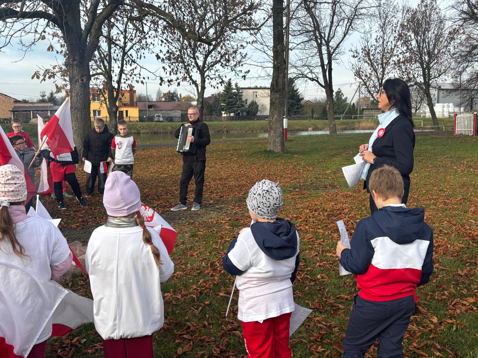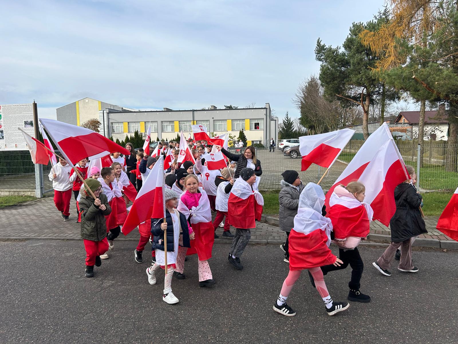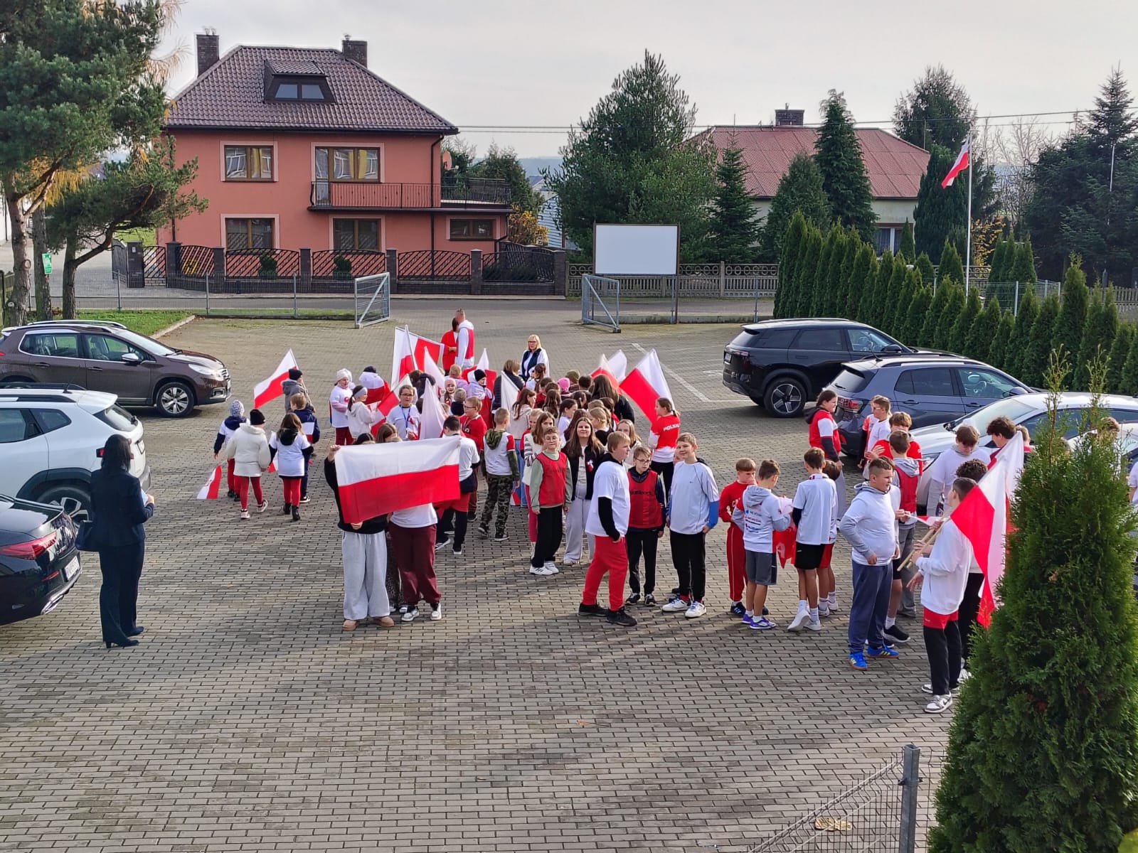 Z okazji Święta Niepodległości uczniowie klas I-VIII naszej szkoły wzięli udział w „Patriotycznym Biegu z Flagą”, oraz śpiewaniu pieśni patriotycznych przy ognisku. Dodatkowo pani Marzena Peruga - Malińska przeprowadziła krótką lekcję historii "Od rozbiorów do Niepodległości"