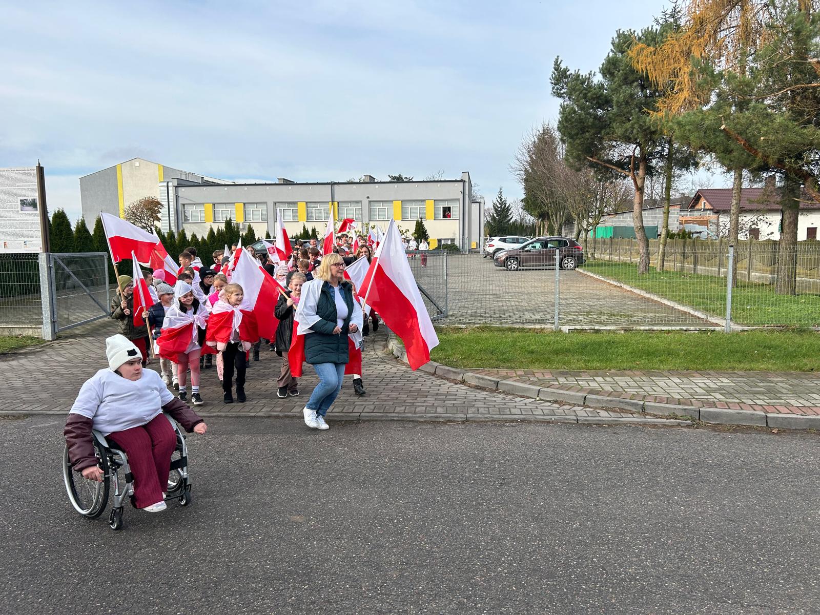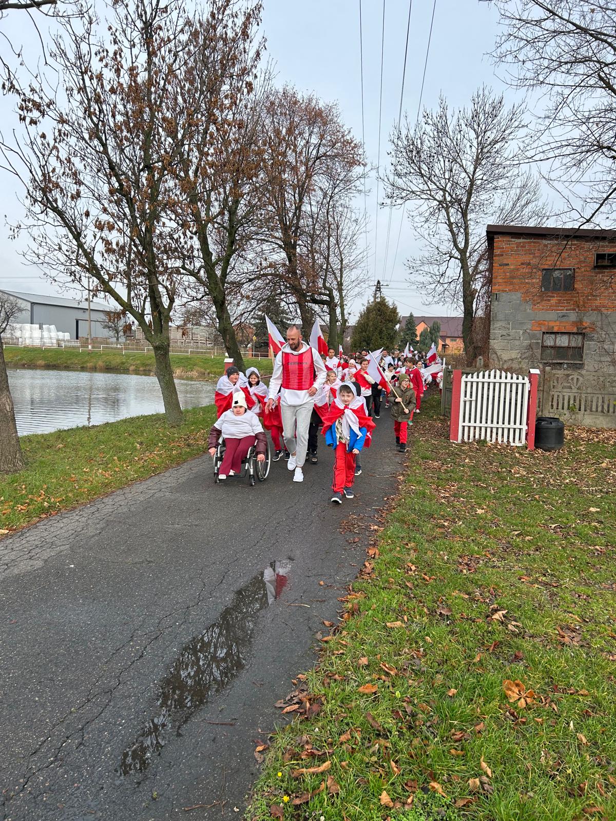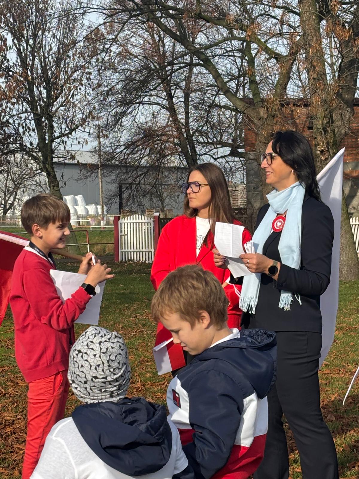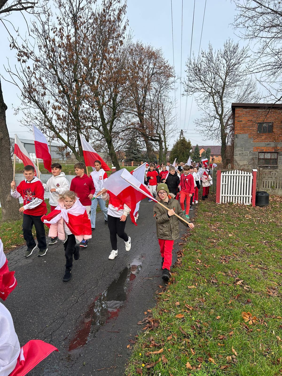Z okazji Święta Niepodległości uczniowie klas I-VIII naszej szkoły wzięli udział w „Patriotycznym Biegu z Flagą”, oraz śpiewaniu pieśni patriotycznych przy ognisku. Dodatkowo pani Marzena Peruga - Malińska przeprowadziła krótką lekcję historii "Od rozbiorów do Niepodległości"