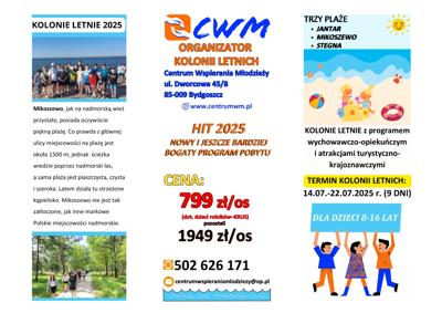 Centrum Wspierania Młodzieży KOLONIE LETNIE...